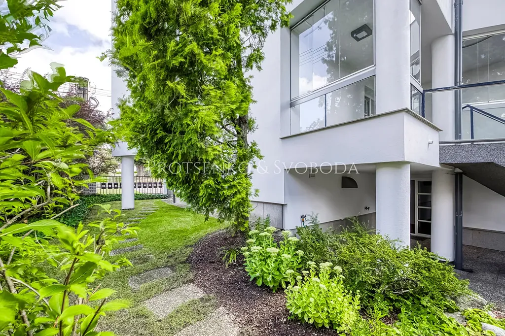 V přízemí jsou připravené prostory, které se dají využít jako ordinace nebo kanceláře, přičemž oddělený vstup zajišťuje soukromí obytné části. Ve vyšších podlažích se nachází prostorné byty s terasou, zimní zahradou či lodžií, což podtrhuje pohodlný a reprezentativní charakter domu.