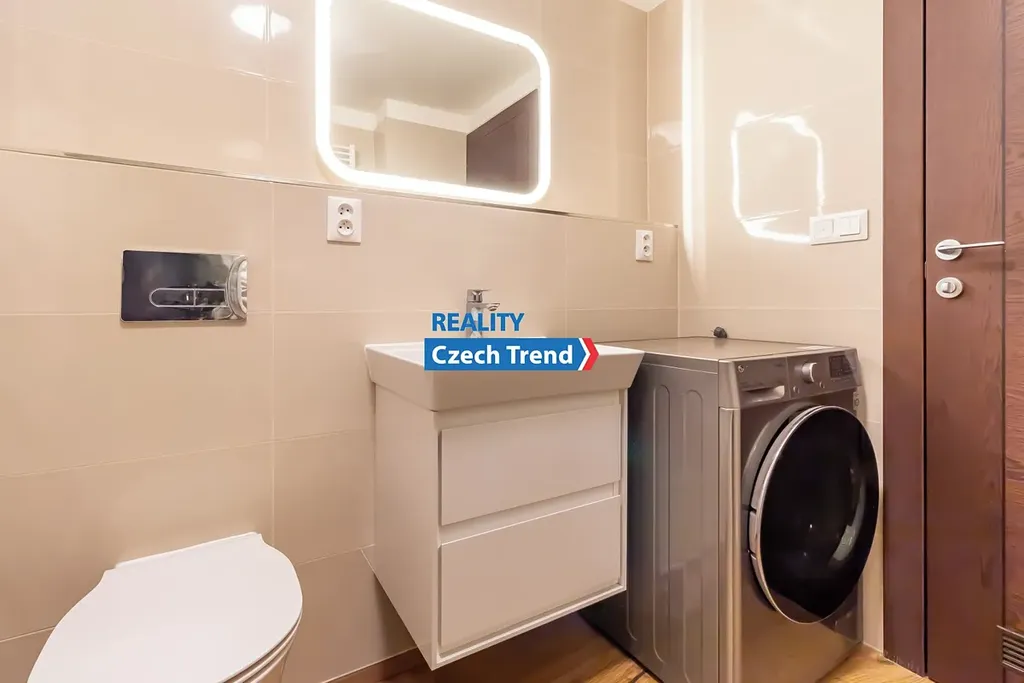 Cena je 19.000,- Kč + 3.500,- Kč poplatky (včetně garážového stání v suterénu domu)