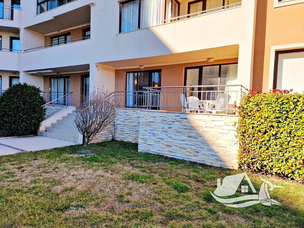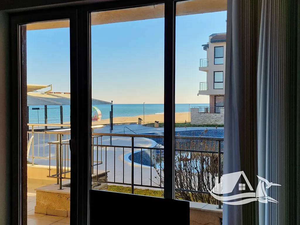 Nabízíme ke koupi nádherný dvoupokojový apartmán o celkové ploše 68 m², který se nachází ve vyvýšeném přízemí prestižního komplexu na první linii u moře ve městě Obzor. Tento apartmán má praktické a funkční uspořádání, které nezahrnuje žádné průchozí místnosti. Skládá se ze vstupní chodby, prostorného obývacího pokoje s kuchyňským koutem a jídelním prostorem, samostatné ložnice, koupelny s toaletou a velké terasy. Terasa je přístupná z obou místností a umožňuje přímý vstup k bazénu a na pláž. Z apartmánu se nabízí jedinečný výhled na moře i na bazén, což z něj činí ideální místo pro odpočinek a relaxaci.