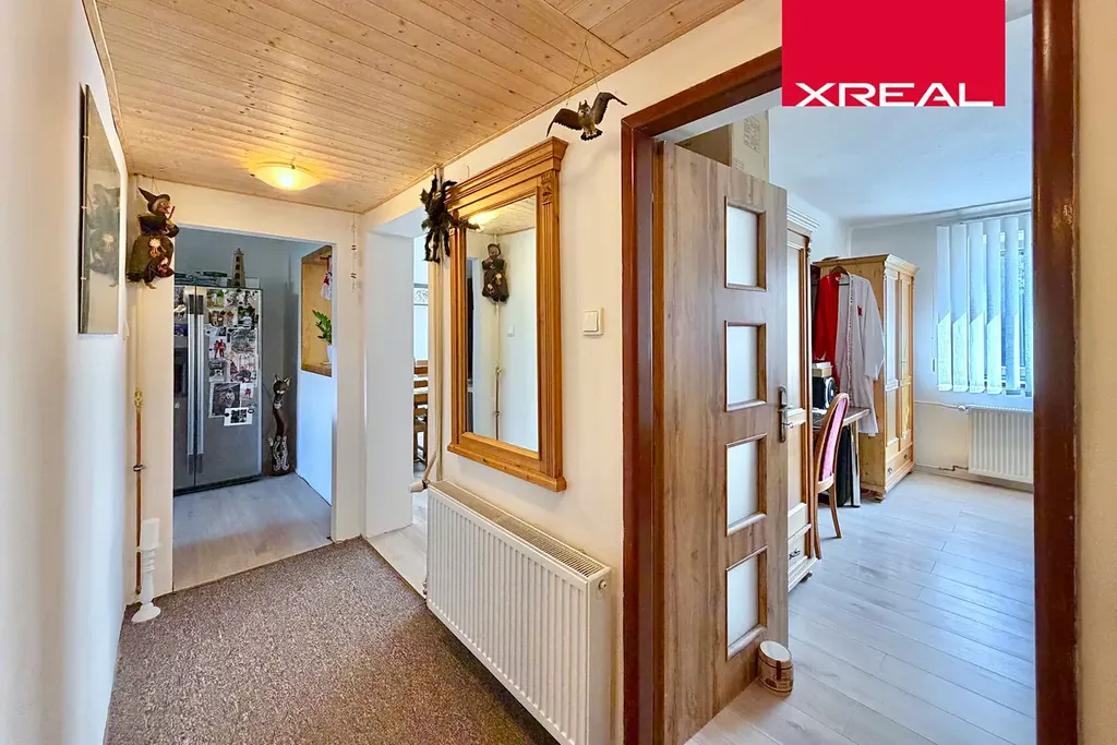 Rodinný dvoupodlažní dům s 2 bytovými jednotkami z roku 1960, na východě navazující na sousední dům. Podlahová plocha domu je 140,7 m2, samostatné zděné garáže 13,4 m2, krytého sezení 13,6 m2 a zahradního skladu 8,0 m2. Oba byty 2+1 mají samostatné vchody ze dvora s bezpečnostními dveřm, koupelnu, samostatné WC, zádveří, spíž, komoru a technickou místnost. Spodní byt je po rekonstrukci, horní v původním dobrém stavu. Oba byty jsou ihned použitelné. NAVÍC je možné využít i podkroví! Objekt je napojen na veřejný rozvod elektřiny, plynu, vody a kanalizace. Energetická náročnost budovy je třídy G. Dům má centrální vytápění a ohřev vody plynovým kondenzačním kotlem.