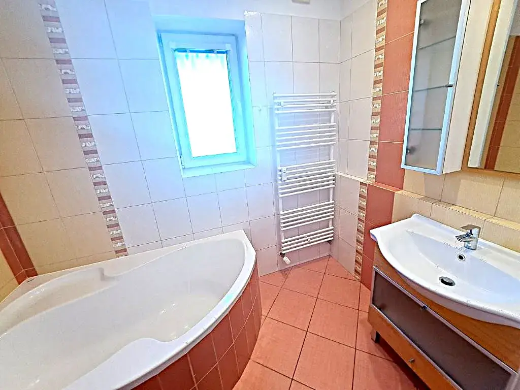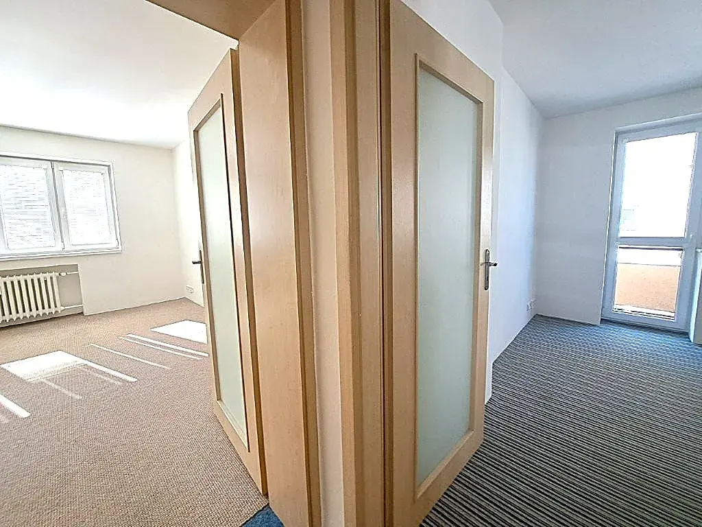 Byt má vytápěnou plochu 68,4 m2 + balkón má výměru 4,2 m2 + sklep o výměře 7 m2 - celková užitná plocha bytu je 79,6 m2. Dispoziční řešení bytu: vstup-šatna, koupelna s oknem (vana, umyvadlo, el. žebřík), samostatné WC Geberit s umyvadlem a ruční sprchou, chodba, kuchyň - propojená s obývacím pokojem a východem na balkón, ložnice, pokoj. Byt je prostorný a světlý. V bytě jsou plastová okna, nové rozvody včetně elektřiny v mědi, nové obložkové dveře, nová světla, podhledy, koupelna, WC Geberit, kuchyň, podlahy pod kobercem-parkety.