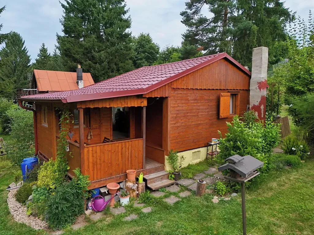 Pečlivě udržovaná chata se skládá z velké obývací místnosti/ložnice s krbovými kamny, předsíně a účelného kuchyňského koutu se sporákem. K dispozici dále sprchový kout a samostatné WC. Celková velikost pozemku činí 630 m2 (zastavěná plocha 31 m2) + dřevěná krytá terasa s posezením 7,8 m2.