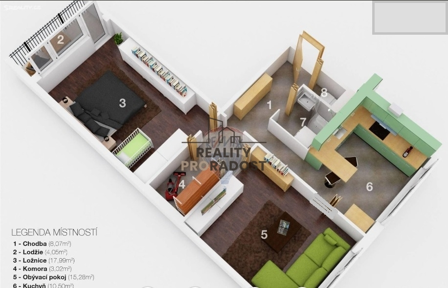 Byt není vybavený nábytkem,
