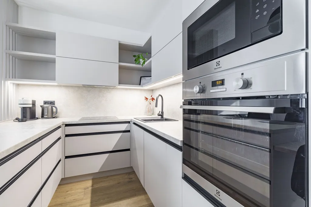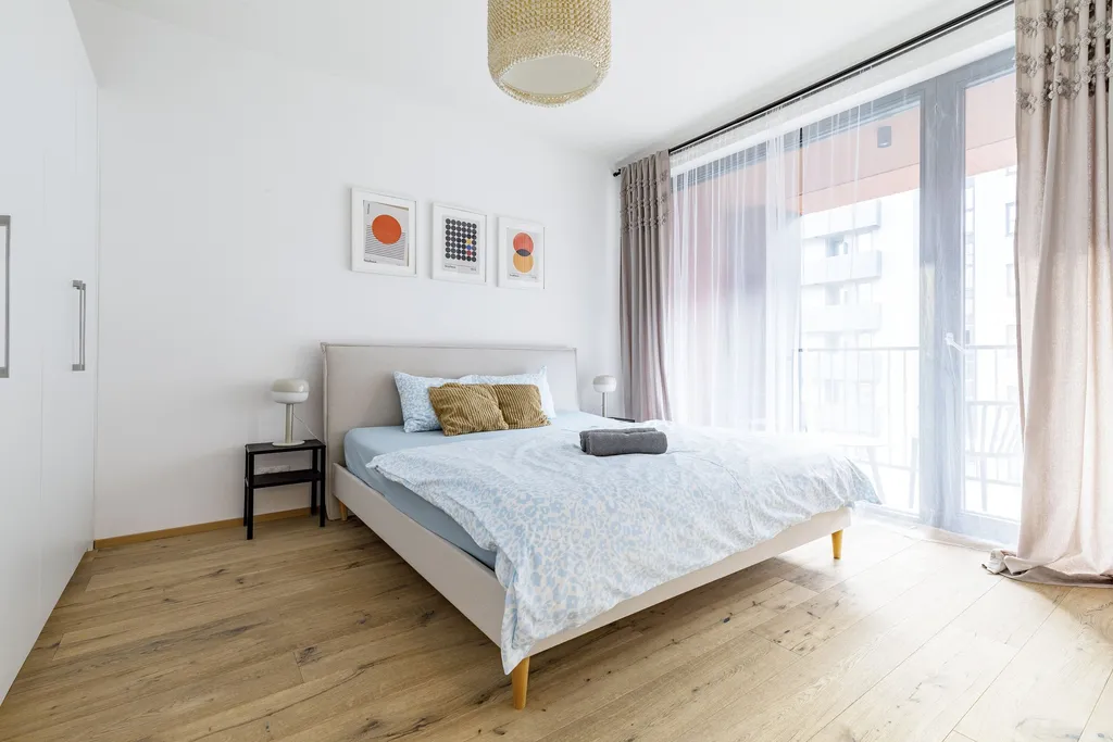 Velkým benefitem bytu je jeho nadstandardní vybavení – v celém bytě je podlahové topení, nechybí klimatizace pro komfort během letních měsíců a na oknech jsou instalovány venkovní rolety, které zajišťují soukromí i regulaci teploty. Součástí vybavení je také pračka se sušičkou, kompletní nábytek včetně postele, sedačky, jídelního stolu a dalších prvků, takže byt je připraven k okamžitému nastěhování bez nutnosti dalších investic.