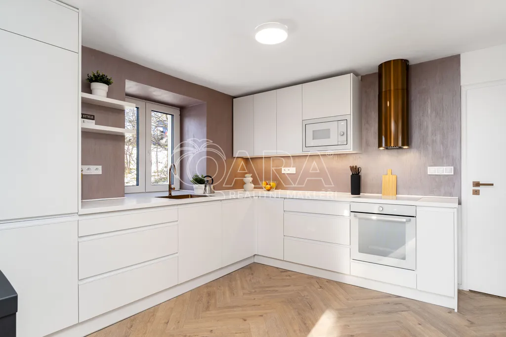 V domě se nachází pouze dvě bytové jednotky, což zaručuje klid a soukromí. K bytu náleží také sdílená zahrada, ideální pro relax i grilování s přáteli.