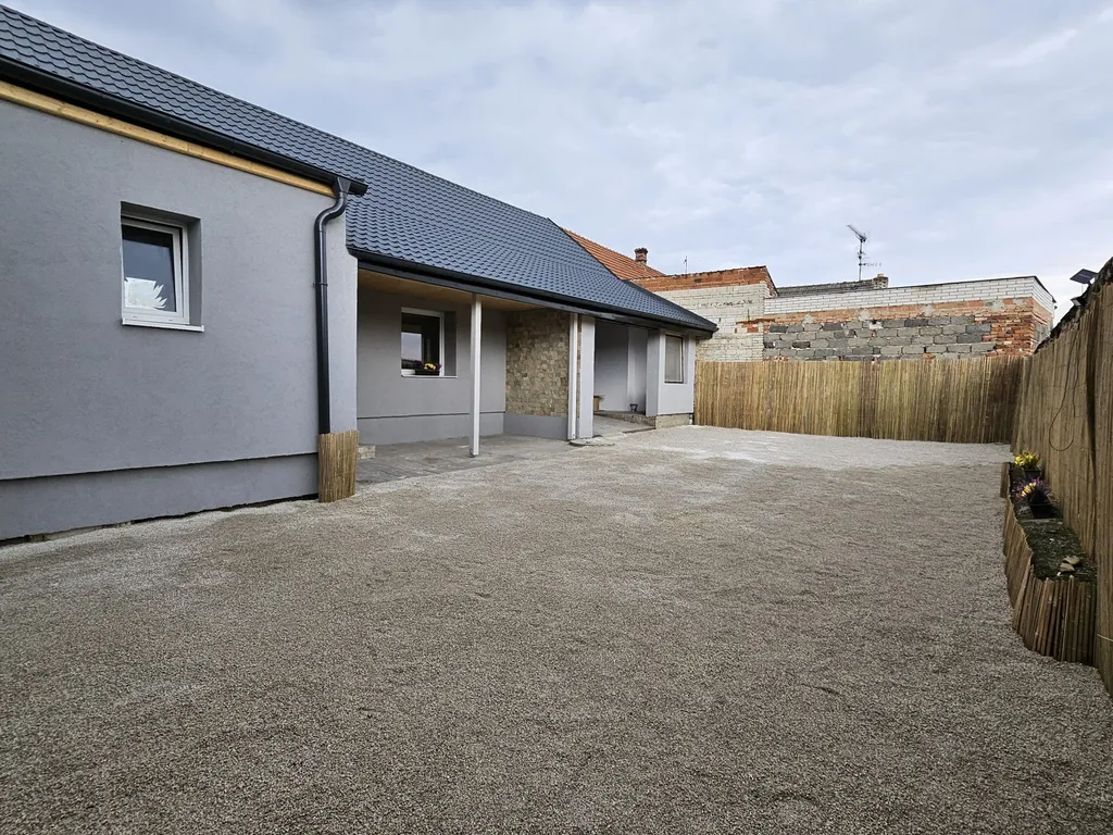 Součástí bytu je také uzavřený dvorek, který poskytuje dostatek soukromí i prostor pro odpočinek. Vytápění a ohřev vody jsou řešeny tepelným čerpadlem.