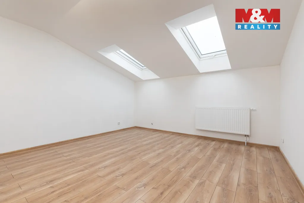 Podkroví je řešeno jako klidová zóna s ložnicí s vestavěnou skříní, samostatnou šatnou, dětským pokojem a hlavní koupelnou, což vytváří plnohodnotné a komfortní zázemí pro rodinu i náročné páry.