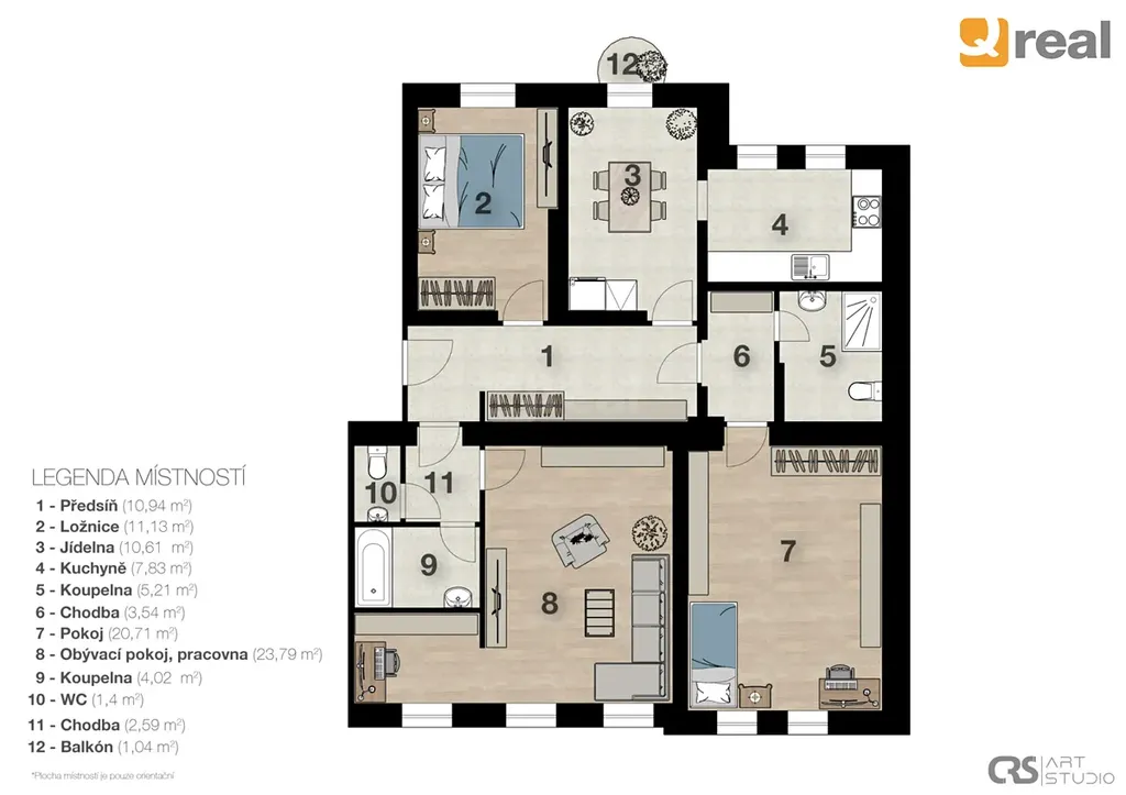 • Dispozice 4+1 s oddělenou jídelnou – praktické a velmi pohodlné řešení pro každodenní život.