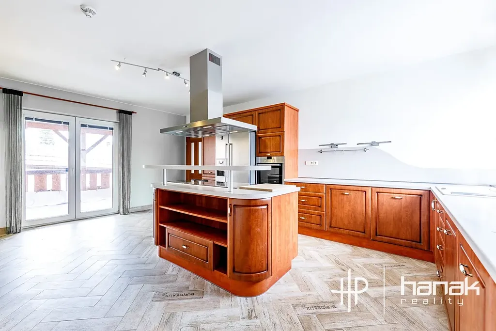 V levém křídle rodinného domu je druhý byt bezbariérový byt o dispozici 2+1 o výměře 80 m2. Ložnice má vstup do praktické šatny a na velkou 25 m2 velkou terasu. Třetí jednotka pro hosty v podkroví nabízí dvě ložnice a koupelnu s vanou.