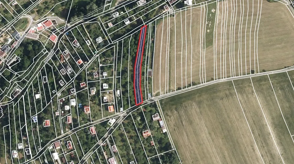 Šířka pozemku je 8 m a od poloviny délky se postupně zužuje až do konce na 5 m, délka pozemku 120 m. Pozemek je volně přístupný bez oplocení se vzrostlou zelení. Přístup na pozemek je z jižní strany po obecní zpevněné, asfaltové komunikaci.