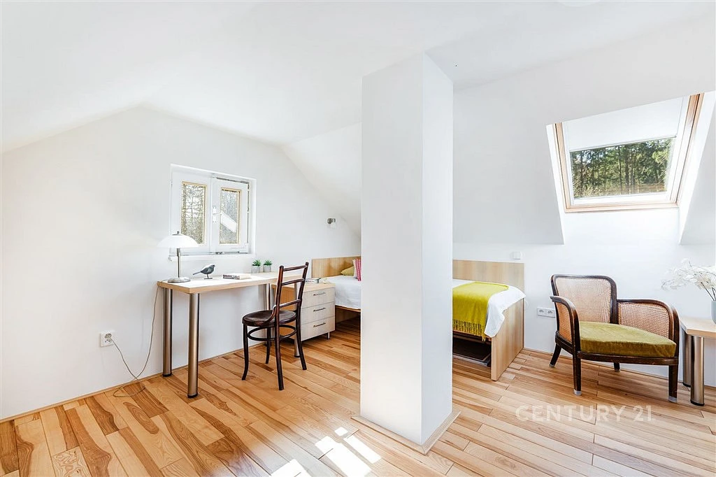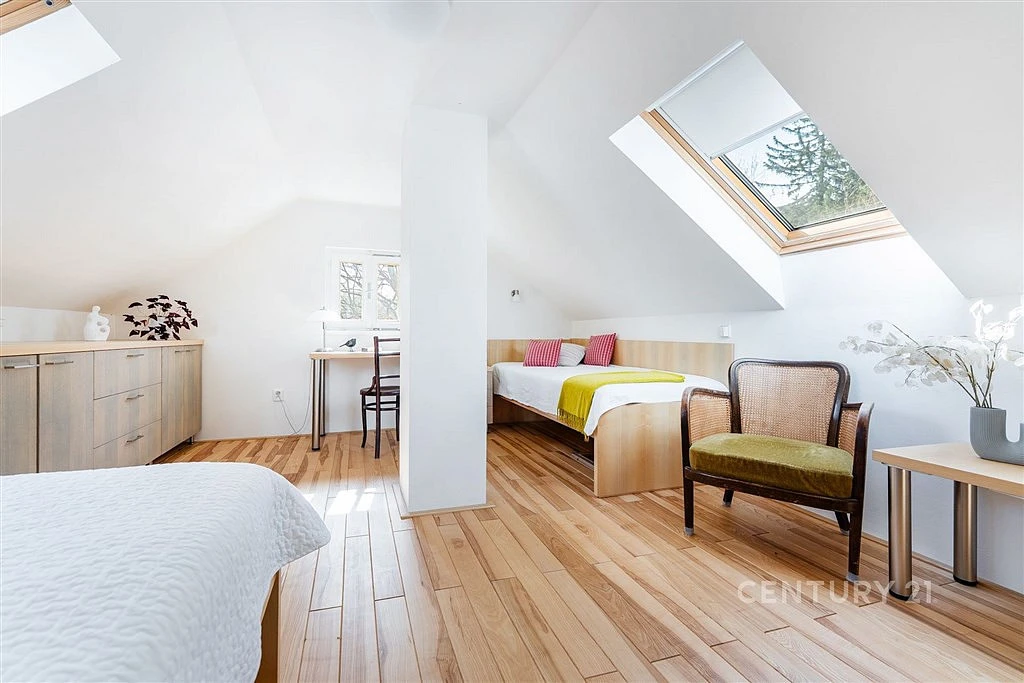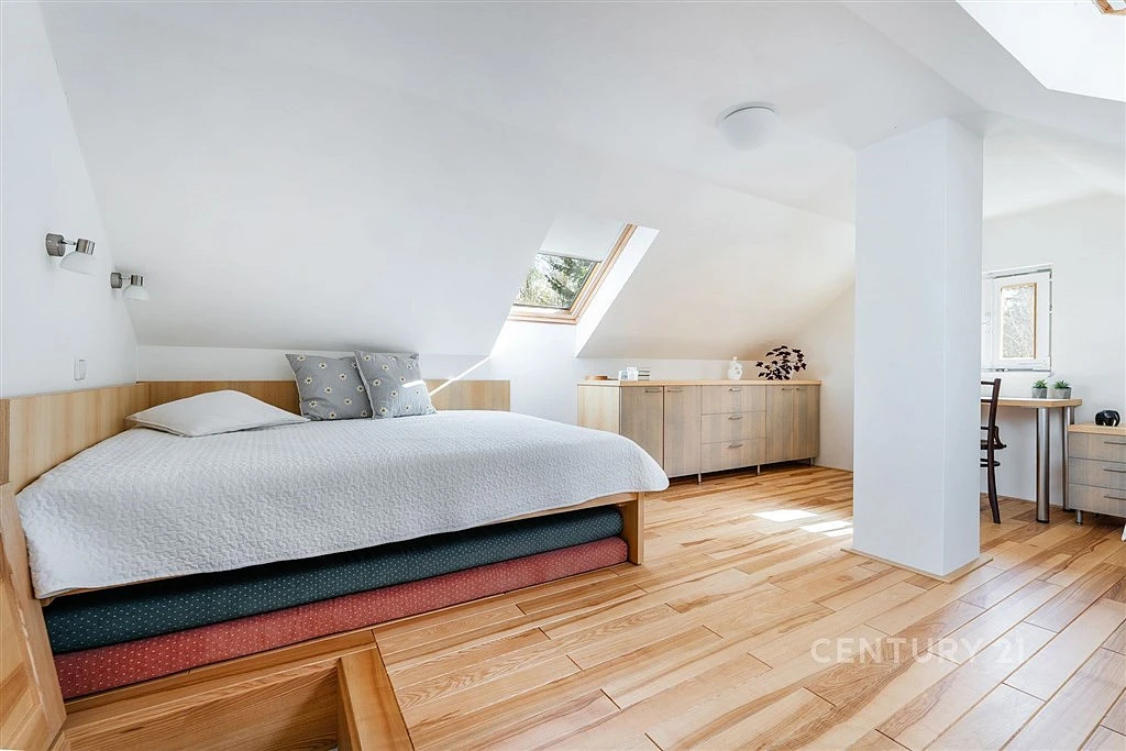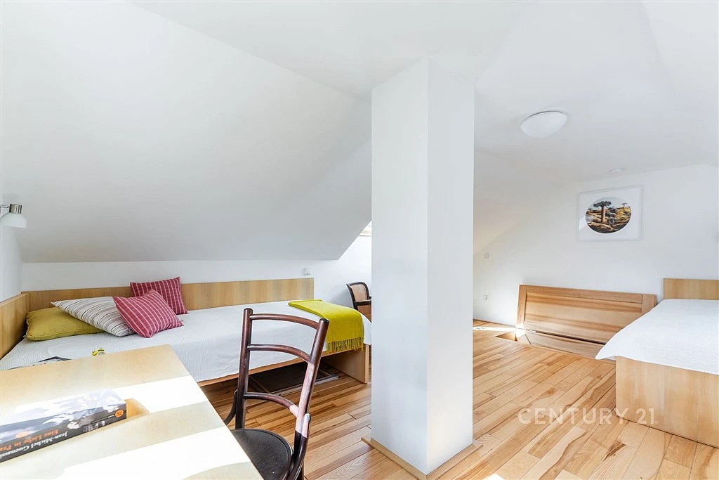 Ta byla celá nově postavena na místě původní dřevěné, aby dokázala nabídnout komfort a současně odpovídala nárokům, ze kterých dnes už nechceme slevit ani v lůně přírody. Pověstnou třešinkou na dortu je pak útulné dřevěné podkroví s nábytkem z truhlářské dílny na míru.