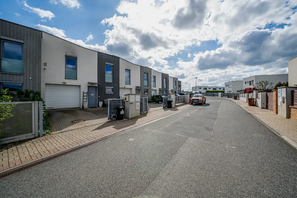 Nabízím k prodeji trendový řadový rodinný dům s dispozicí 5+kk a garáží,pozemek 290 m s užitnou plochou 138 m2,zahradou za domem o výměře 145 m2, a terasy 8,5m , dalším pozemkem před domem o velikosti 43 m2 v jihozápadní části Prahy 12, Cholupice. Dům je součástí rezidenční klidové zóny obce, vystavěné postupně v roce 2015. Dům samotný je patrovou, nepodsklepenou zděnou stavbou s rovnou a mírně šikmou střechou. Dispozice domu je rozdělena do dvou podlaží. Přízemí domu s hlavním vstupem do domu a integrovanou garáží, je řešeno jako 1+kk a je společenským patrem celého domu. Zádveří domu je prostorné natolik, že je zde prostor pro šatnu i technické zázemí domu. Obývací pokoj s elektrickým krbem je volně průchozí s kuchyňským koutem a tvoří tak jeden otevřený prostor. Příjemným bonusem je přímý vstup na zahradu domu a zastřešenou terasu s venkovním posezením. Zahrada za domem je klidným místem pro venkovní posezení s rodinnou a grilování s přáteli. Kuchyně je vybavena moderní kuchyňskou linkou v šedém dřěvěném provedení s vestavnými spotřebiči. Součástí podlaží je také koupelna vybavená sprchovým koutem, umyvadlem, zrcadlem a wc. V 1.NP propojeným s přízemím schodištěm se dřevěnými nášlapnicemi, se nachází 4 ložnice, dvě s orientací do zahrady, dvě do ulice. Dále pak prostorná koupelna s vanou, dvěma umyvadly, zrcadlem. V této koupelně je dostatek místa, tak je zde i pračka a sušička. Dále pak samostatné wc. Je to klidová část domu. Každý z pokojů má velké francouzské okno s nerušícím výhledem do zahrady nebo okolí domu. Rodičovská ložnice pak nabídne navíc šatnu oddělenou posuvnými dveřmi. Dům je napojen na všechny dostupné IS a primárním zdrojem tepla je plynový kotel s radiátory. K základním standardům domu patří kvalitní okna, plovouci vinylová podlaha a dlažba...v oknech bezpečnostní hliníkové žaluzie. Stejně tak optický kabel nebo zabezpečovací zařízení. Dum je prodáván včetně veškerého vybavení a luxusního dřevěného nábytku na míru, jako například knihovna v obývacím pokoji, 2x dětský pokoj s vybudovaným patrem na spaní, king size postel 220x200cm s vysokým čaloněným čelem, vybavený pokoj pro hosty atd Prochazkou je možné se vydat do lesů a parků v nejbližším okolí. Modřanská rokle, hriste a letiste Točná, cyklostezky. Stejně tak za aktivním odpočinkem, tenis, jízda na koni, fotbal, apod. Městská část Cholupice, je místem s výbornou dopravní dostupností. Zastávka busu linky č.341 je 1 min. v pochozí vzdálenosti od domu. Bus je za 8 minut na tram c.17,3,21 spojení s centrem Prahy za 15min. Autem je perfektní dostupnost i na Smíchov a Anděl cca 15 min, kousek je nájezd na Pražský okruh. Základní služby občanské vybaveností jsou v dosahu a otázkou pár minut autem nebo MHD v Modřanech. Obec Cholupice je v posledních letech velice vyhledávanou lokalitou pro bydlení, a to i díky své klidové podobě a možnostem aktivního života a přitom na dosah vymoženostem Prahy. Možné financovat hypotečním úvěrem.. Více na osobní schůzce a prohlídce.