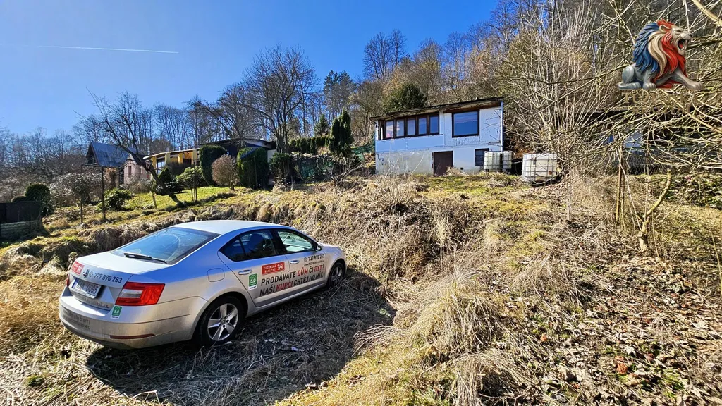Příjezd k chatě je poměrně komfortní po takřka vodorovné zahradní městské cestě. Na pozemku v dolní části v tuto chvíli zaparkujete 2 osobní auta.