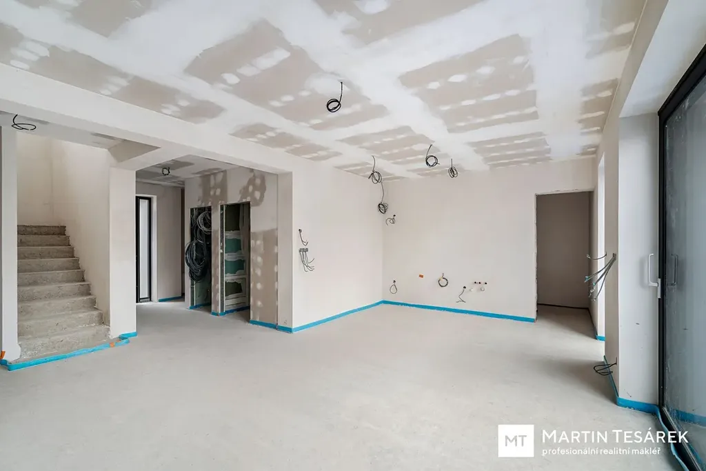 Tato nízkoenergetická novostavba z roku 2025 nabízí velkorysou dispozici 7+KK a je ve fázi těsně před dokončením. Uvnitř najdete hotové omítky, sádrokartonové stropy, kompletní přípravy elektroinstalace, rozvodů, chytré domácnosti i pečlivě provedené zateplení. Velkoformátová hliníková okna přivádějí do domu spoustu světla a fasáda už čeká jen na to, až kolem ní rozkvete zahrada.