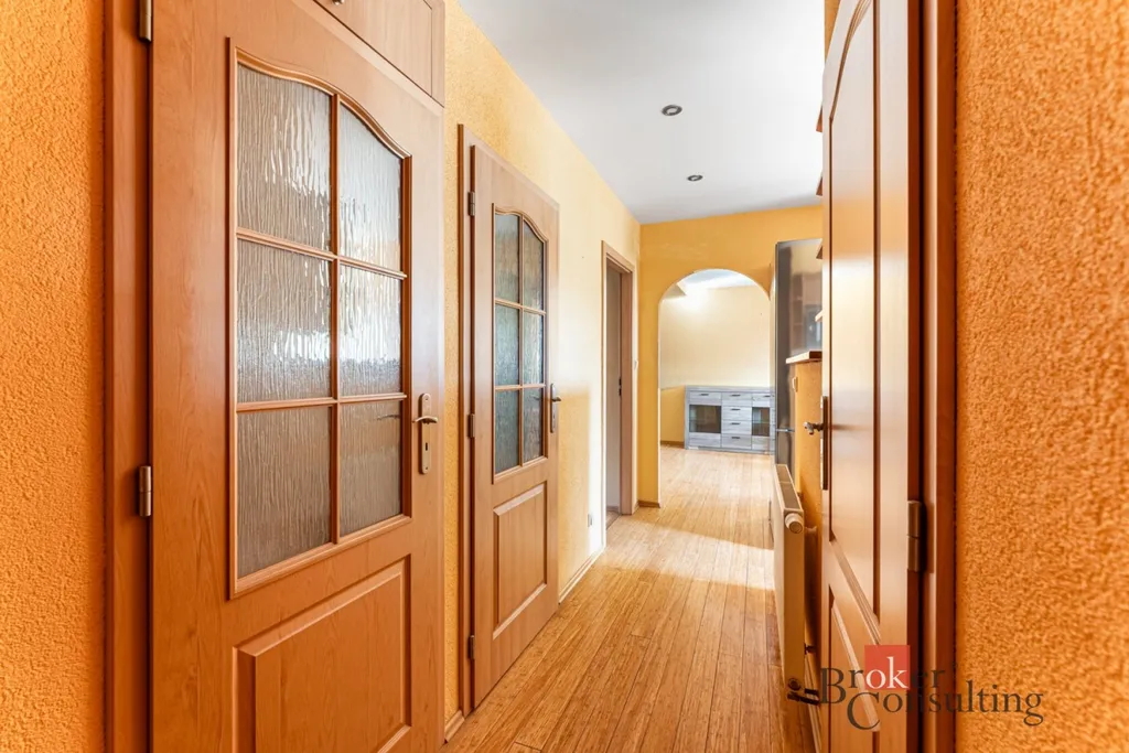 Velkou výhodou bytu je takédalší samostatná místnost v přízemí, do které vedouschody z předsíně. Tento pokoj může sloužit například jako ložnice, pracovna, pokoj pro hosty nebo pánská místnost.