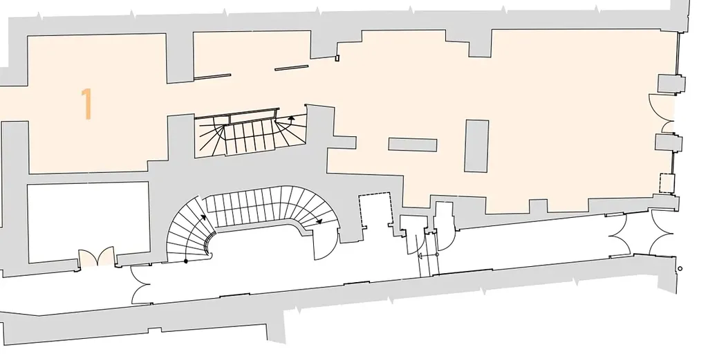 Prostor se nachází v přízemí, mezipatře a suterénu budovy a disponuje velkými výlohami s přímým vstupem z ulice. Provize RK je 1× měsíční nájem + DPH.