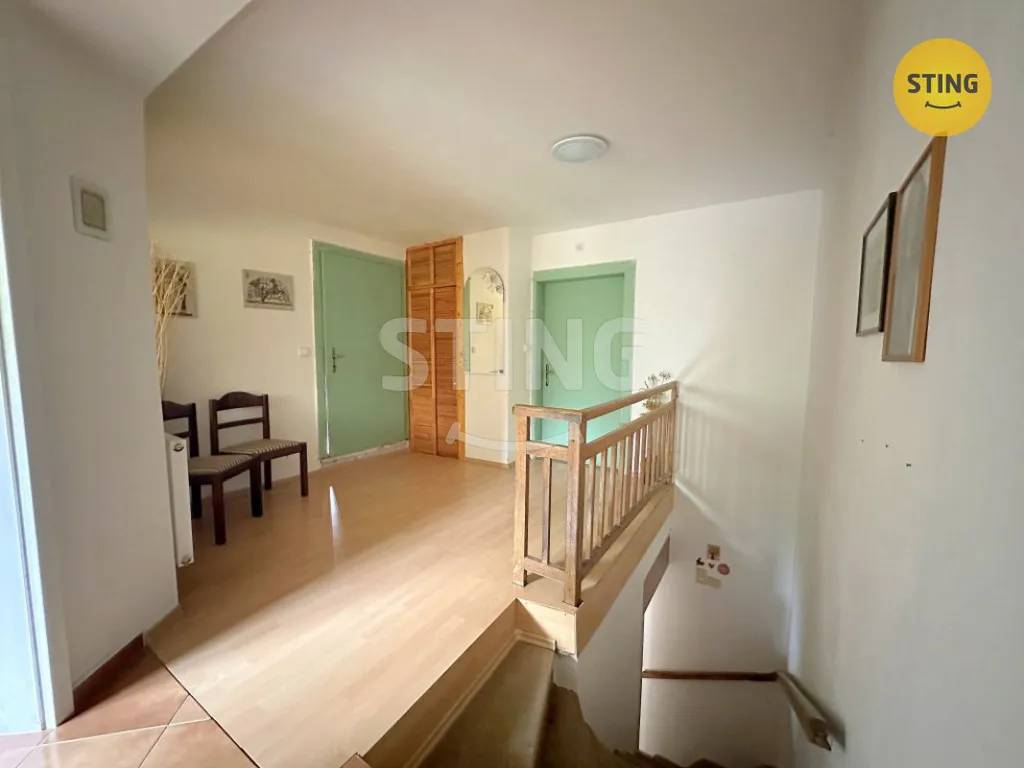 Obytné podkroví nabízí tři samostatné pokoje, z nichž jeden má kouzelnou atmosféru díky atypickým nízkým dveřím – ideální dětský pokoj nebo pokoj pro hosty. Dále zde najdete prostornou koupelnu s rohovou vanou, dvěma umyvadly a samostatným WC. Prostor je otevřený, světlý a díky orientaci obytných místností na jihovýchod a jihozápad krásně prosvětlený.