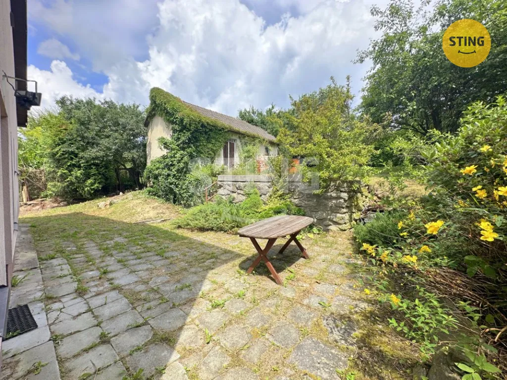 Pozemek je mírně svažitý, oplocený pletivem na ocelových sloupcích a osázený okrasnými i ovocnými dřevinami. Na zahradě stojí zděná kolna, která slouží jako dílna a sklad zahradního náčiní. Parkování je možné přímo na vlastním pozemku, příjezd je po zpevněné obecní komunikaci.