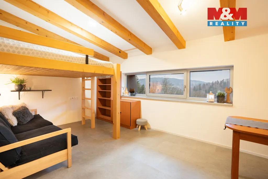 Nabízíme ke koupi útulný ateliér 1+kk o velikosti 25,1 m², ideální pro sezónní užívání, v malebné části Malý Semerink v Janově nad Nisou. Tento prakticky řešený nebytový prostor se nachází v 5. nadzemním podlaží stylové, horské budovy s výtahem. Ateliér disponuje vstupní chodbou, koupelnou se sprchovým koutem a toaletou, kuchyní vybavenou lednicí a myčkou, a pokojem s jídelní částí, posezením a patrovou nástavbou pro spaní. Budova nabízí komfortní zázemí včetně kamerového systému, společné kolárny, lyžárny, prádelny a herny. Parkování je zajištěno u domu s vjezdovou bránou. Výborná dostupnost k lyžařským areálům na Hraběticích i běžeckému areálu v Bedřichově zajišťuje skvělé možnosti pro milovníky zimních sportů, cyklostezek a turistiky v Jizerských horách.