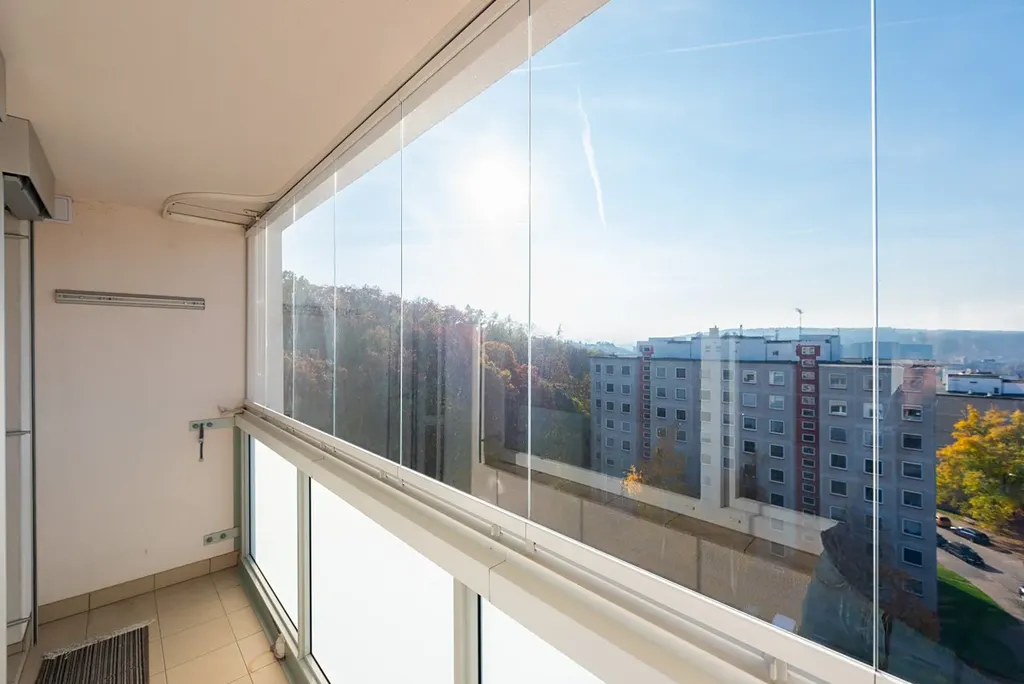 Dominantou bytu je prostorný obývací pokoj se vstupem na slunnou lodžii, odkud se otevírá krásný výhled do zeleně směrem na kopce nad Chuchlí a vilovou čtvrť Hodkoviček. Dále jsou k dispozici dvě velkorysé ložnice a samostatná kuchyň s jídelním koutem, který je ideálním místem pro dlouhé víkendové snídaně a společné rodinné večeře. Dispozice bytu je velmi příjemná a vzdušná, jednotlivé místnosti mají dobré proporce a nabízí dostatek místa pro pohodlné zařízení.