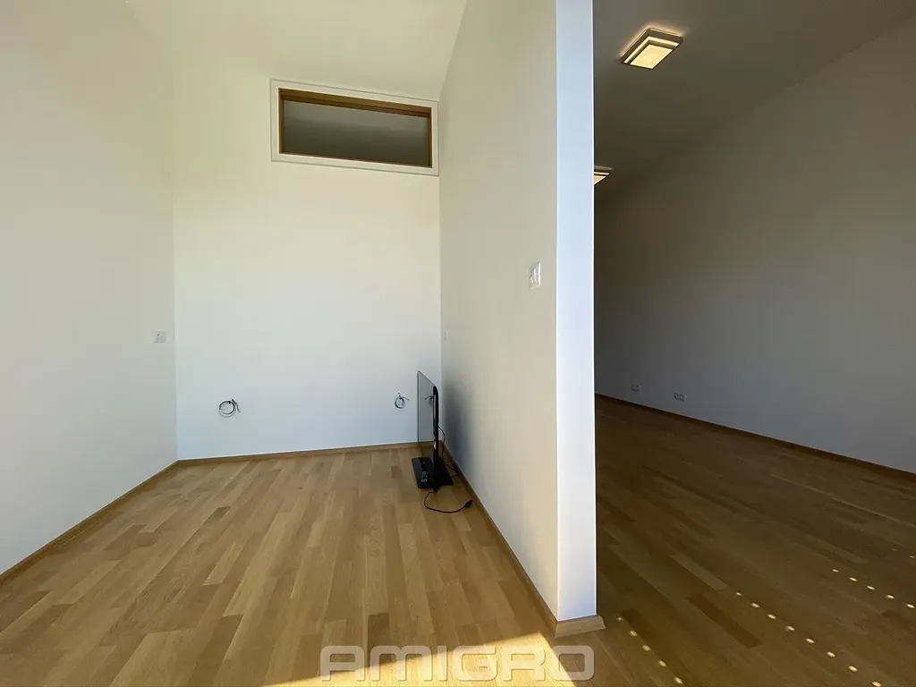 Podlahy dřevěné, hliníková okna - trojskla, předokenní žaluzie na dálkové ovládání, klimatizace s možností ovládání na dálku.