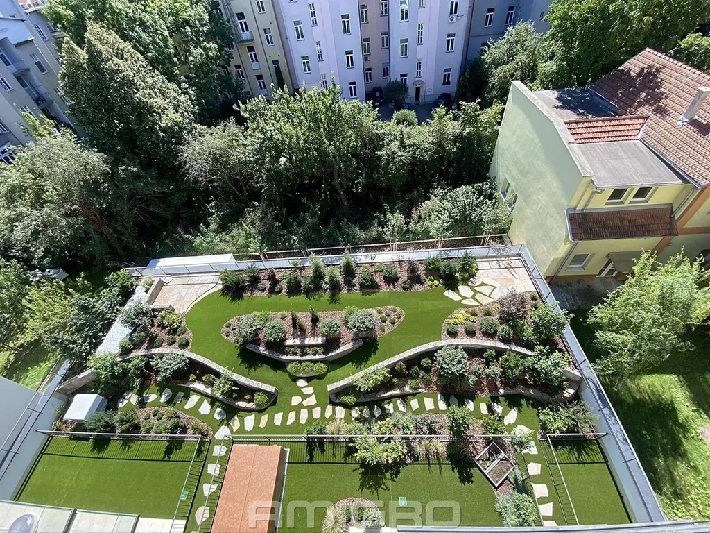 Krásná okrasná zahrada ve vnitrobloku.