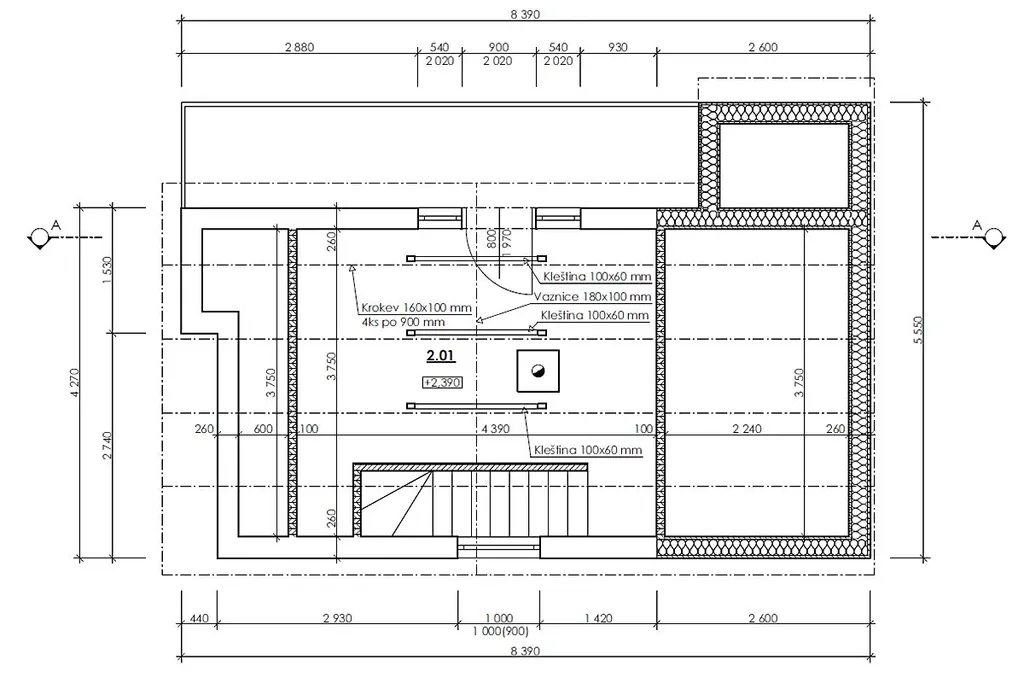 Dispozice: 1+kk s podkrovní ložnicí | užitná plocha 53,57 m²