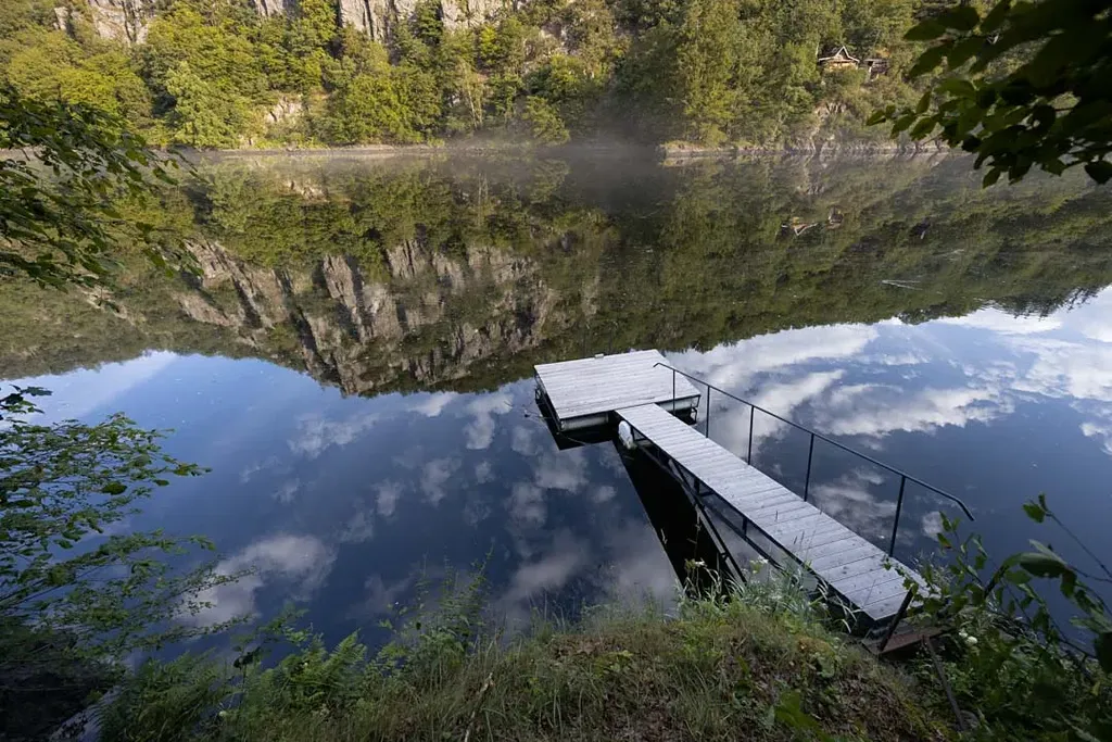 Nabízíme k prodeji nově zrekonstruovanou rekreační chatu s výjimečnou polohou přímo pod nádrží přehrady Štěchovice s výhledem na skalní stěny Vltavského kaňonu. Chata prošla kompletní přestavbou s důrazem na kvalitní materiály a propojení interiéru s okolní přírodou. Interiér je obložen přírodním smrkovým dřevem, objekt je postaven jako dřevěná sendvičová konstrukce s tepelnou izolací.