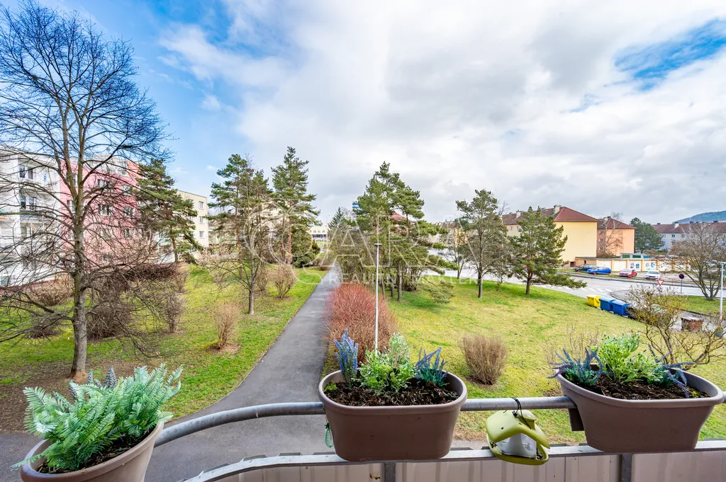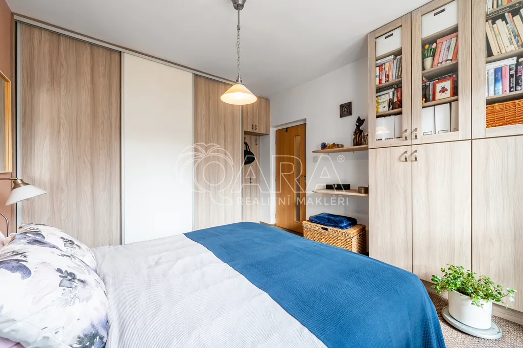 Byt nabízí tři neprůchozí pokoje, samostatnou kuchyň, koupelnu, WC, šatnu, balkon i lodžii. Nedávno byly položeny vinylové podlahy v obývacím pokoji a předsíni, a v ložnici i předsíni jsou na míru vyhotovené vestavěné skříně, které maximálně využívají každý centimetr prostoru a jsou součástí prodeje. K bytu náleží sklepní kóje přímo v patře, což zajišťuje maximální pohodlí a úložné možnosti. Velkou výhodou tohoto bytu je jeho světlost a příjemná orientace na jihovýchod a severovýchod, díky které je v bytě dostatek denního světla po celý den.
