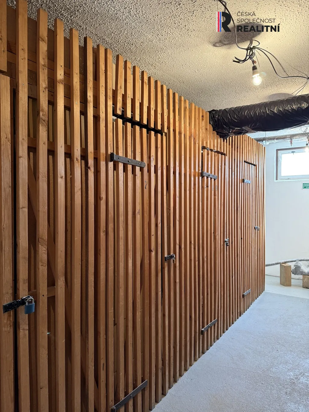 Světlá výška 2,63m. Vytápění a ohřev vody zajišťuje městská kotelna. K bytu náleží sklepní koje.