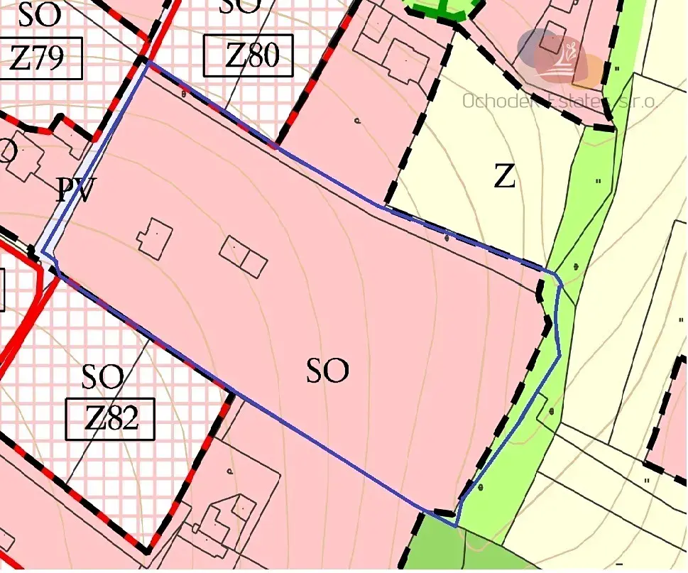 Soubor na sebe navazujících pozemků o celkové ploše 17842 m2, jehož součástí je rodinný dům a hospodářská budova. Většinová část pozemku spadá dle platného územního plánu do kategorie Plochy smíšené obytné, což umožňuje pozemek rozdělit na více menších častí pro stavbu rodinných domů.