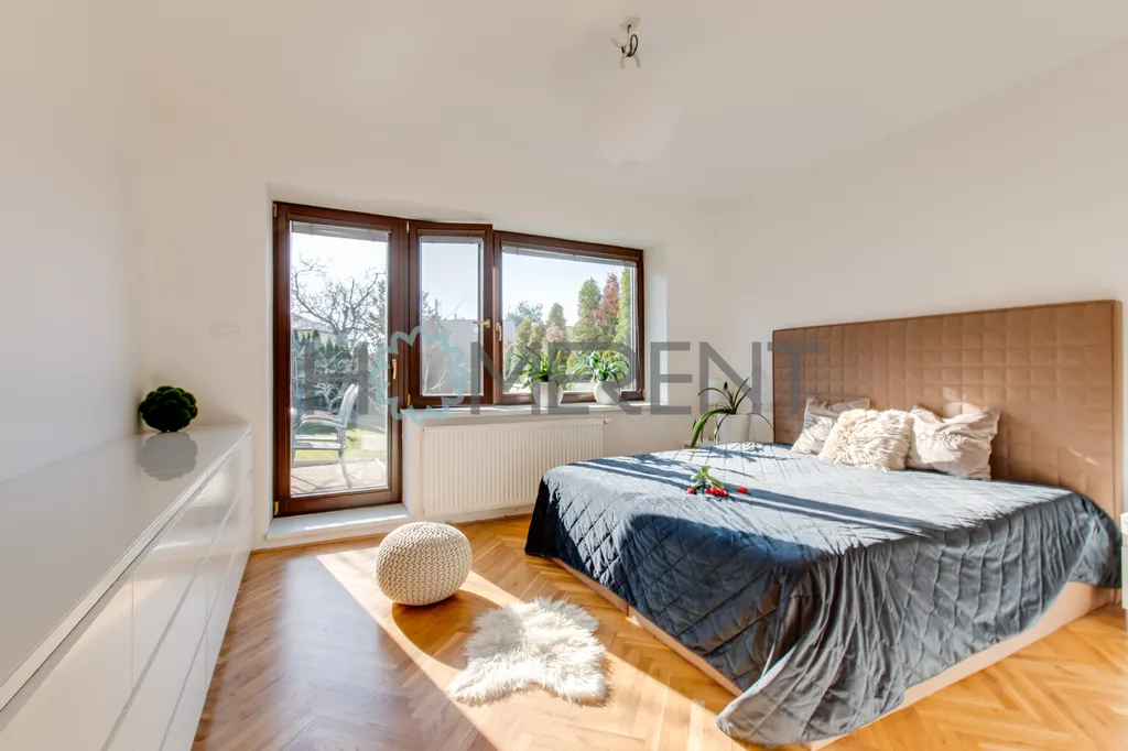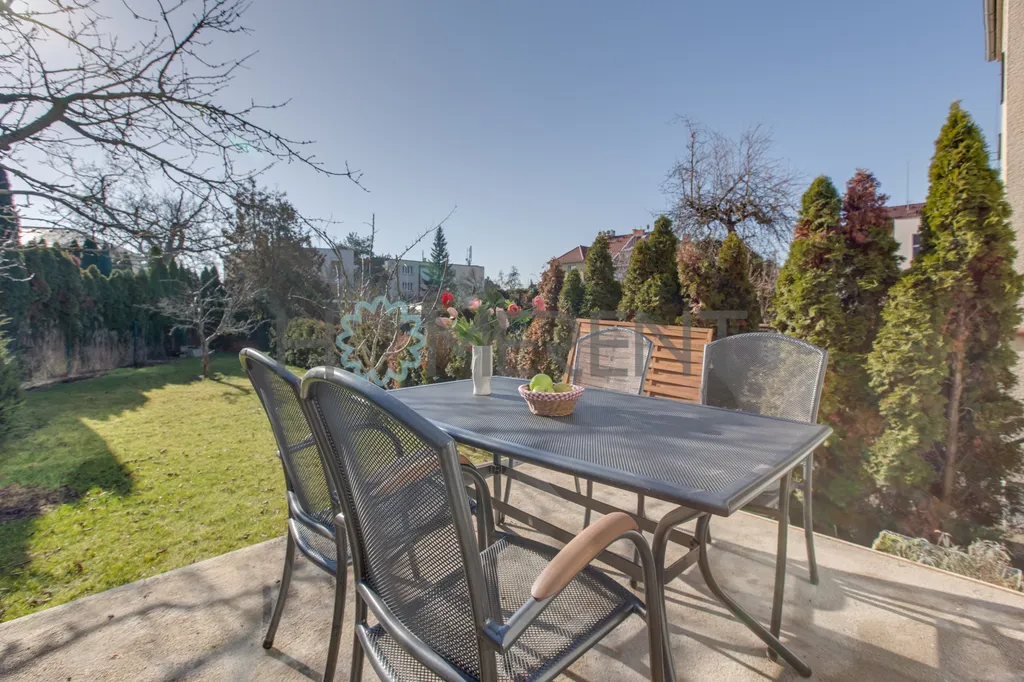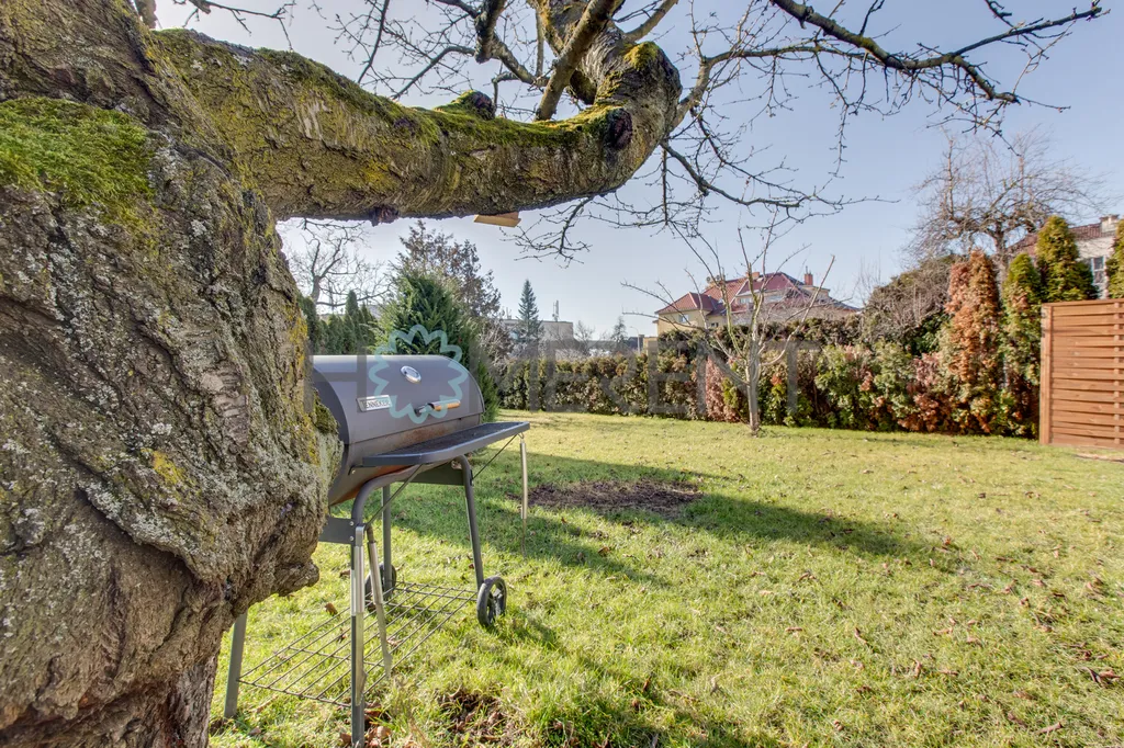 Dominantou nemovitosti je soukromá zahrada s terasou a vzrostlými ovocnými stromy, která nabízí dostatek prostoru pro odpočinek, grilování i posezení v zeleni. Takto velký venkovní prostor je v širším centru Prahy spíše výjimečný.