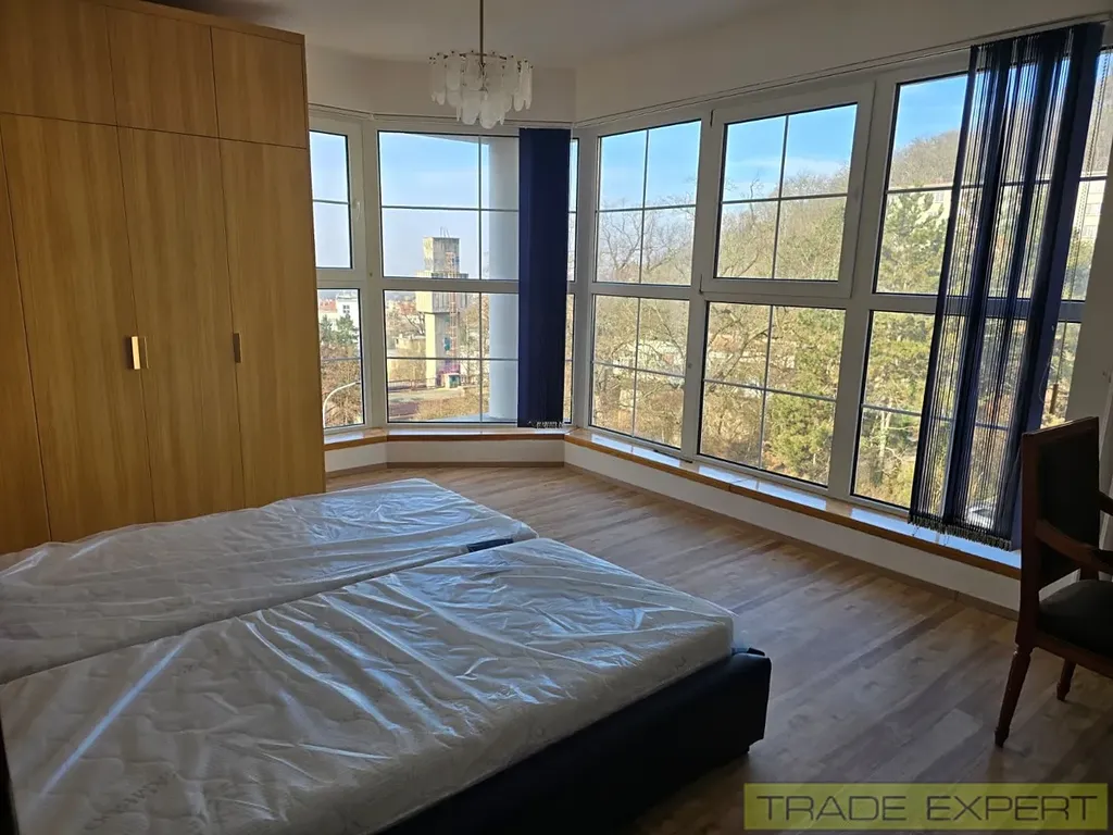 Apartmán je součástí luxusní vily postavené ve svahu, díky čemuž nabízí krásný výhled na Barrandovský most a Barrandovskou kaskádu. Byt je ideální pro nájemce, kteří hledají klidné, elegantní a plně servisované bydlení v Praze.