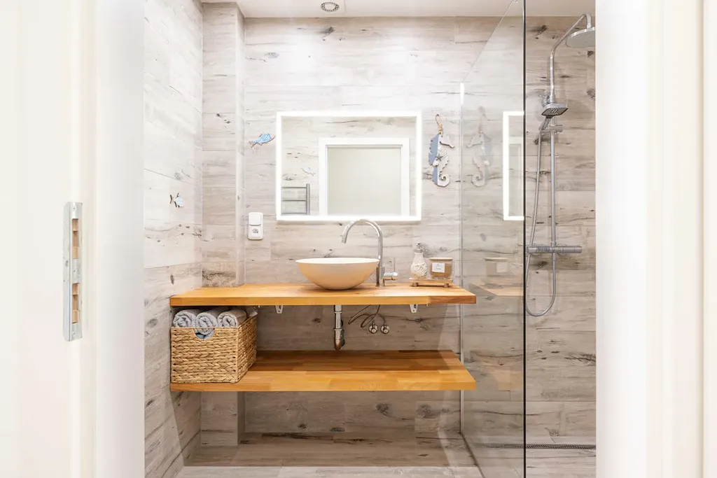 - Nadstandardní rekonstrukce: Byt prošel kompletní a designově sjednocenou proměnou – od moderní kuchyně až po koupelnu s walk-in sprchovým koutem a podsvíceným zrcadlem, která působí jako soukromé wellness.