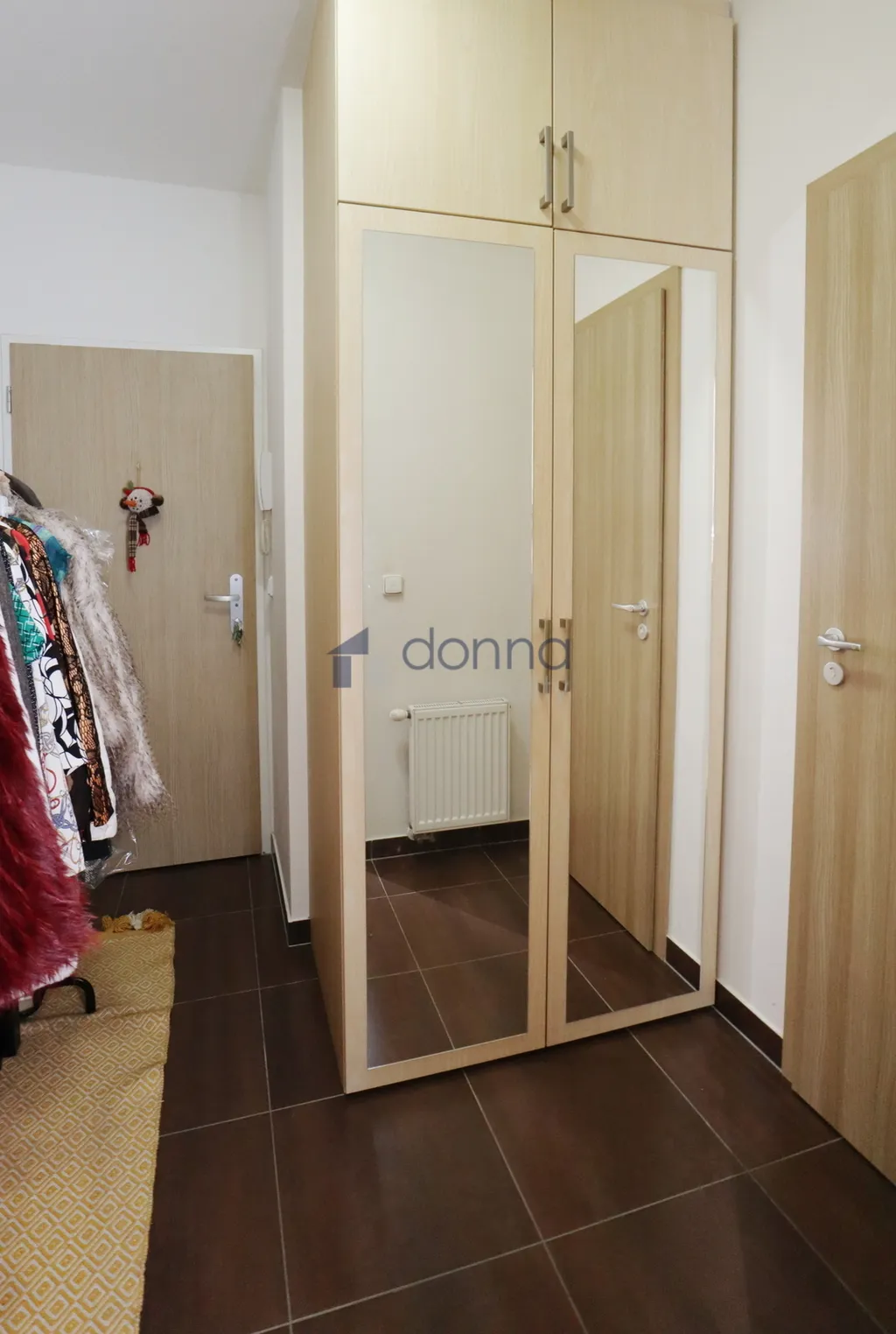 Byt sestává z hlavního obytného prostoru s kuchyňským koutem (18.98m2), který se rozložením nábytku dělí na prostor pro spaní, jídelní a obývací kout. Dále je zde předsíň (4,78m2) a samostatná koupelna s toaletou (4,08m2). Byt je vybaven kuchyňskou linkou se spotřebiči - lednice, varná deska a elektrická trouba, v předsíni šatní skříň, v koupelně sprchový kout s toaletou. Z hlavní obytné místnosti se vchází na lodžii (2,32m2). K bytu patří sklep v suterénu domu o výměře 3,08m2.