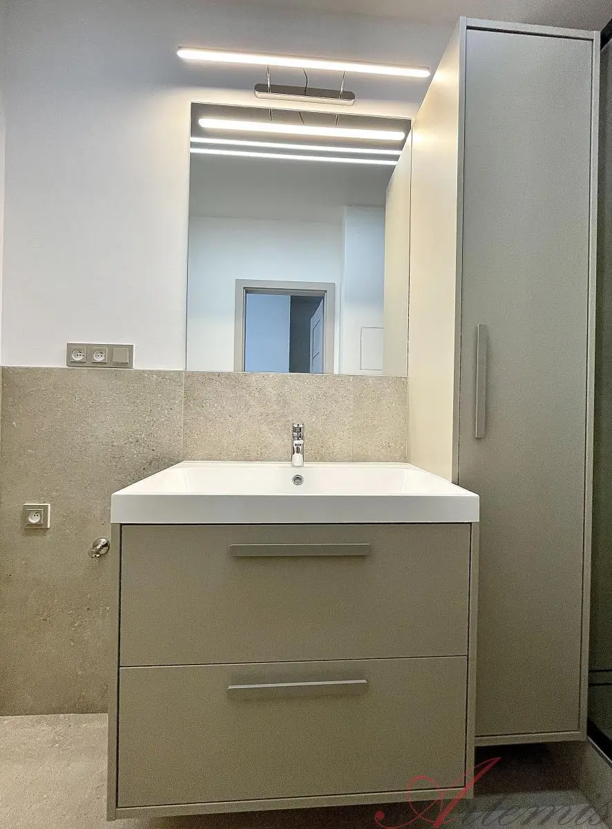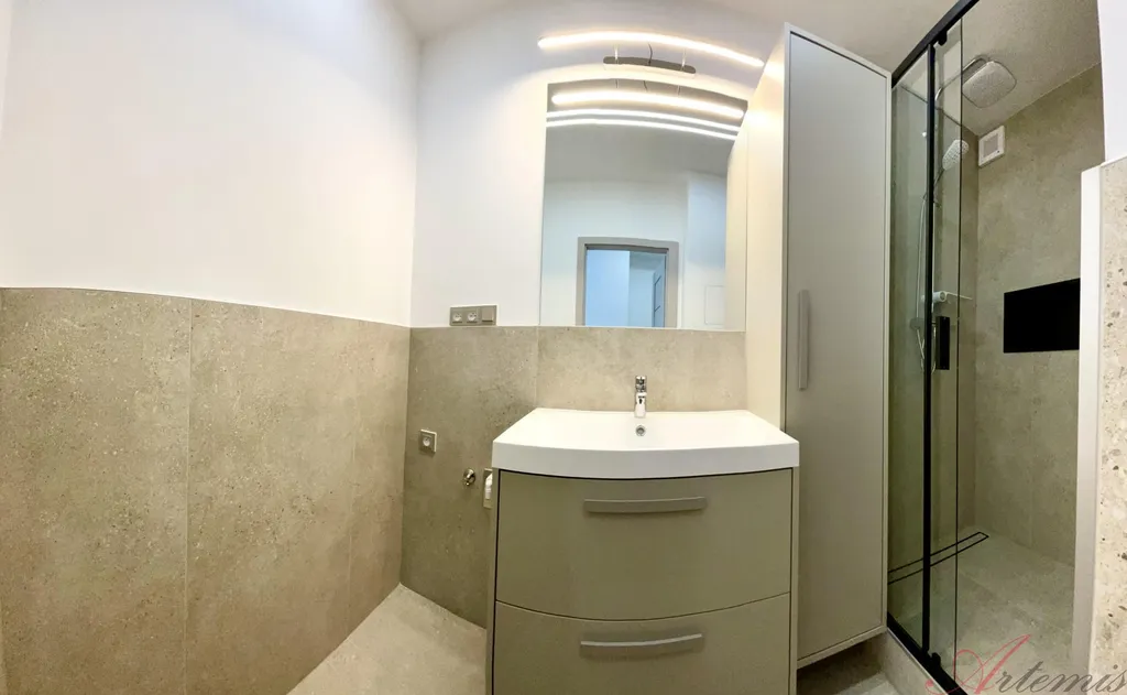 Nově zrekonstruovaný slunný byt v osobním vlastnictví je situován na dvě světové strany: jihovýchodní / severozápadní a nachází se v šestém nadzemním podlaží. Disponuje kuchyňskou linkou s indukční varnou deskou, elektrickou troubou, vestavnou lednicí, mrazákem, myčkou, mikrovlnnou troubou, neméně digestoří. Podlahové krytiny tvoří vinylové plovoucí podlahy, v kuchyni, chodbě a sociálním zařízení je velkoformátová dlažba. Koupelně dominuje prostorný sprchový kout.