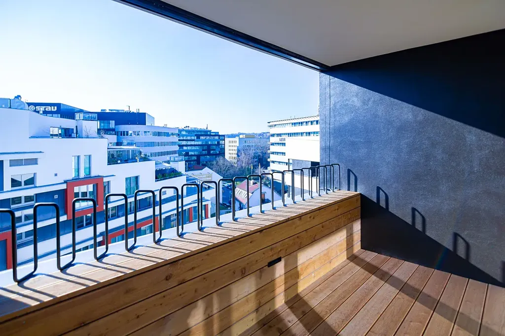 Byt 6.04 s dispozicí 4+kk o ploše 116 m2 a dvěmi lodžiemi se nachází v posledním 5. patře a skládá se z prostorné předsíně, velkého obývacího pokoje s kuchyňským koutem a vstupem na lodžie, ložnice s vlastní koupelnou a WC, dvou dalších pokojů, hlavní koupelny s vanou a dvěma umyvadly, velké komory s pračkou a druhého samostatného WC. Byt má technickou přípravu pro instalaci klimatizace. Všechny jednotky v domě jsou vybaveny exteriérovými hliníkovými žaluziemi s elektrickým ovládáním. K bytu je možné dokoupit druhé parkovací stání i sklep. Více informací naleznete u našeho prodejce.