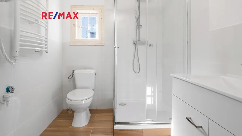 Zvláštností bytu je koupelna, které také prošla modernizací a je umístěná mimo bytovou jednotku, na chodbě domu. Toto řešení může vyhovovat těm, kteří preferují oddělený sanitární prostor mimo hlavní obytnou část.