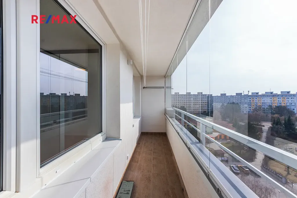 Byt se nachází v 10. nadzemním podlaží a nabízí příjemný otevřený výhled do okolí. Podlahová plocha bytu činí 73 m², k bytu dále náleží zasklená lodžie 7 m² a sklep 3 m² (prakticky umístěný o patro níže v 9. NP). Byt je v osobním vlastnictví a je ihned připraven k nastěhování.