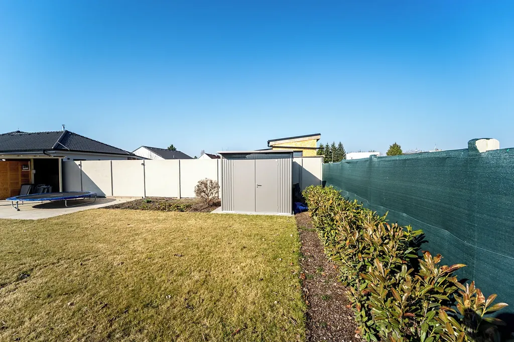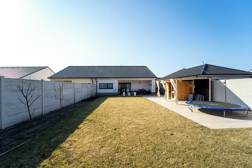 Součástí nemovitosti je pozemek o velikosti 402 m², který nabízí dostatek prostoru pro zahradu, relaxační zónu i rodinné posezení. Na zahradě se nachází zastřešená terasa, která je ideálním místem pro letní večery s rodinou nebo přáteli. Příjemným bonusem je také finská sauna, která poskytuje dokonalý prostor pro odpočinek.