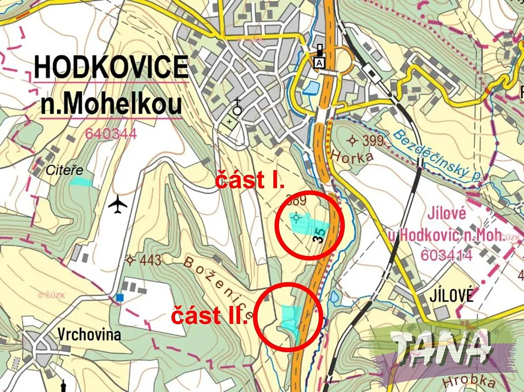 Jedná se o pozemky ve výlučném vlastnictví parcel č.: p.p.č.: 2122, 2123, 2124, 2378, 2379, 2380, 3228, 3229, 3230, 3231, 3232, 3233, 3234, 3382, 3383 vše v obci a k.ú Hodkovice nad Mohelkou, dle LV 115