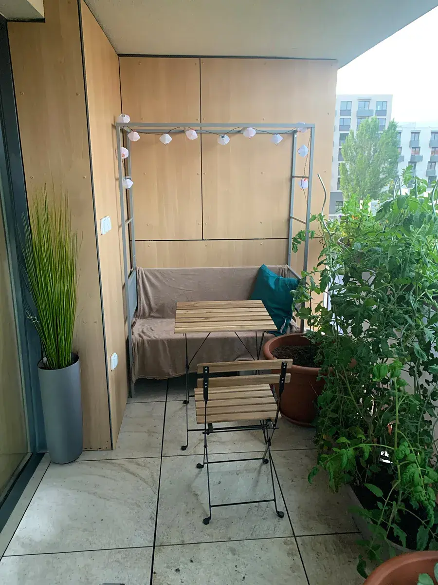 Lodžie je přístupná z obývacího pokoje i ložnice, což příjemně propojuje interiér s venkovním prostorem a zvyšuje komfort bydlení.