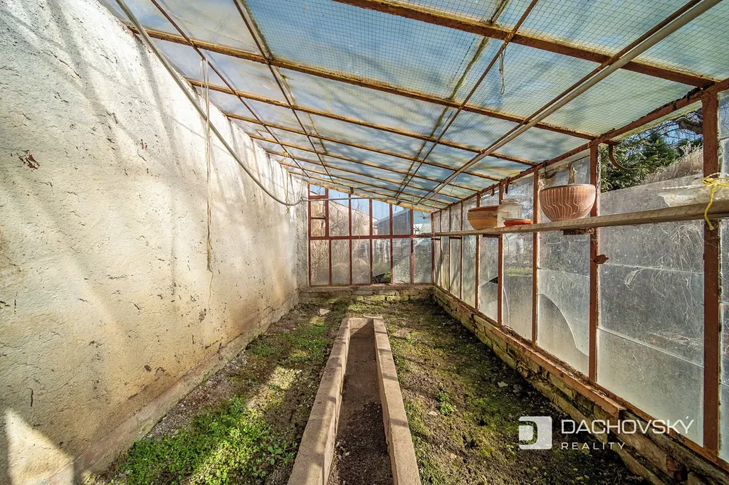 Na pozemku je studna s užitkovou vodou, vhodnou například pro zalévání zahrady, a také skleník pro pěstování zeleniny či bylinek. Za chatou se navíc nachází praktická dřevěná kůlna na nářadí, která poskytuje dostatek prostoru pro uskladnění zahradního vybavení.