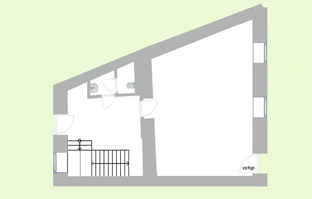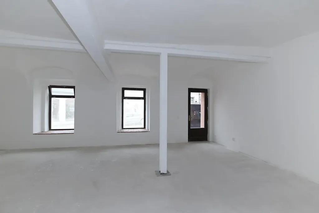 Prostory s výlohami se skládají z hlavní plochy, sociálního zařízení a sklepní místnosti. Vše v základní úpravě, dokončení dle svých individuálních potřeb.