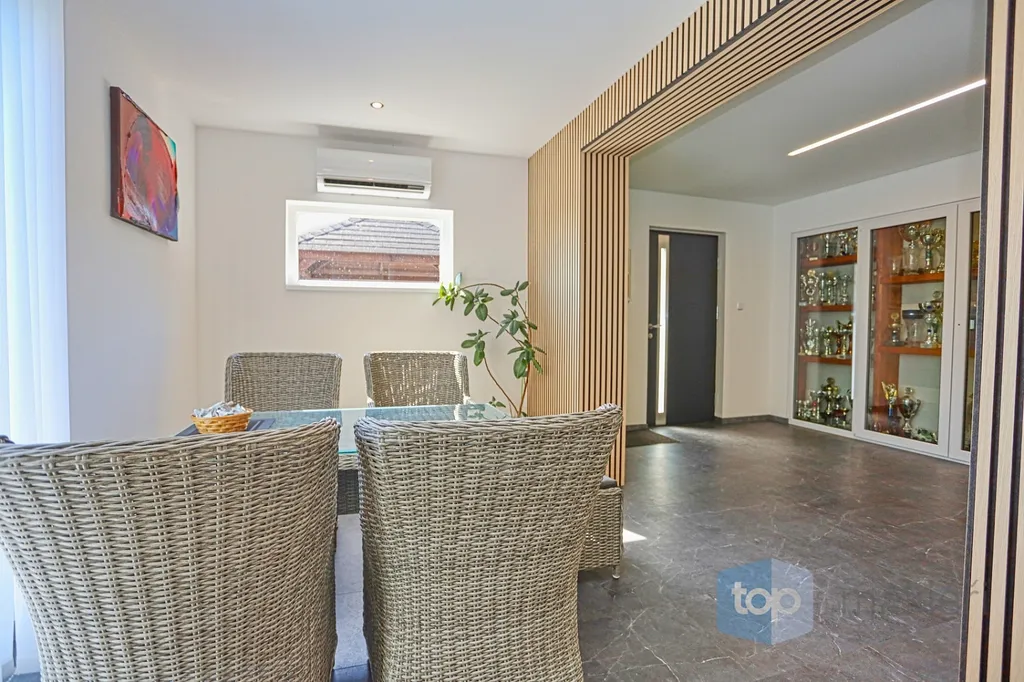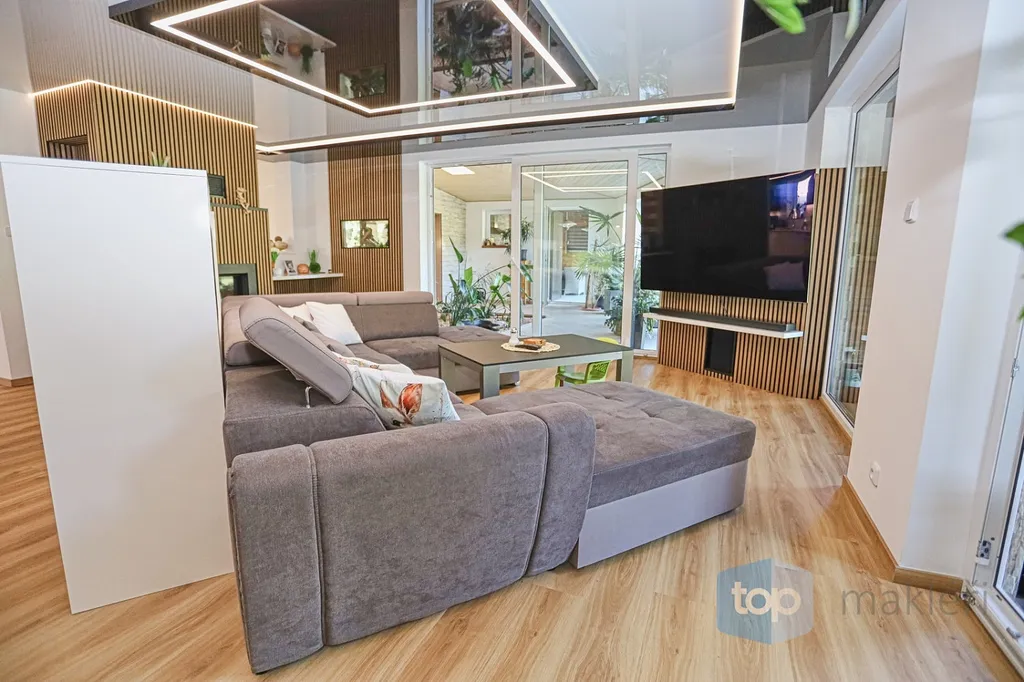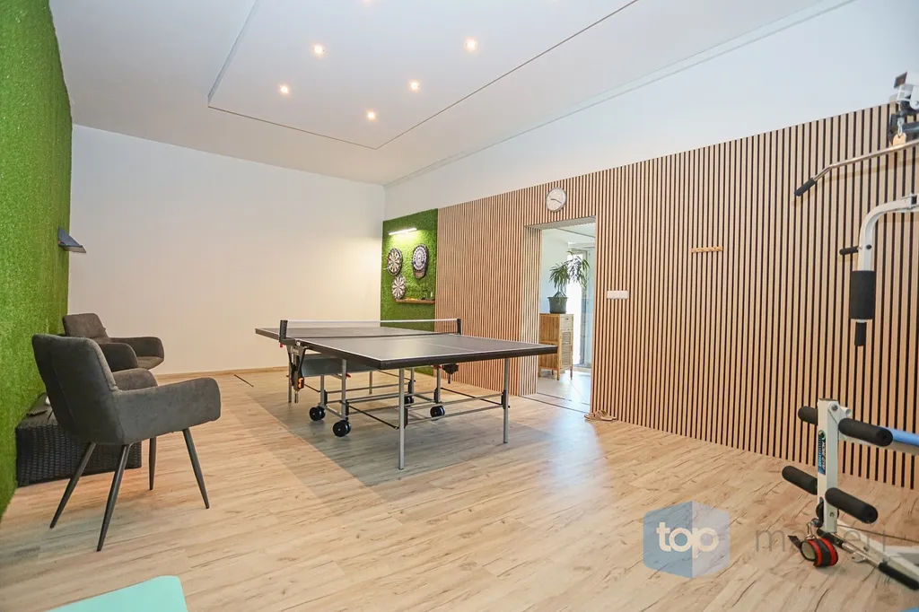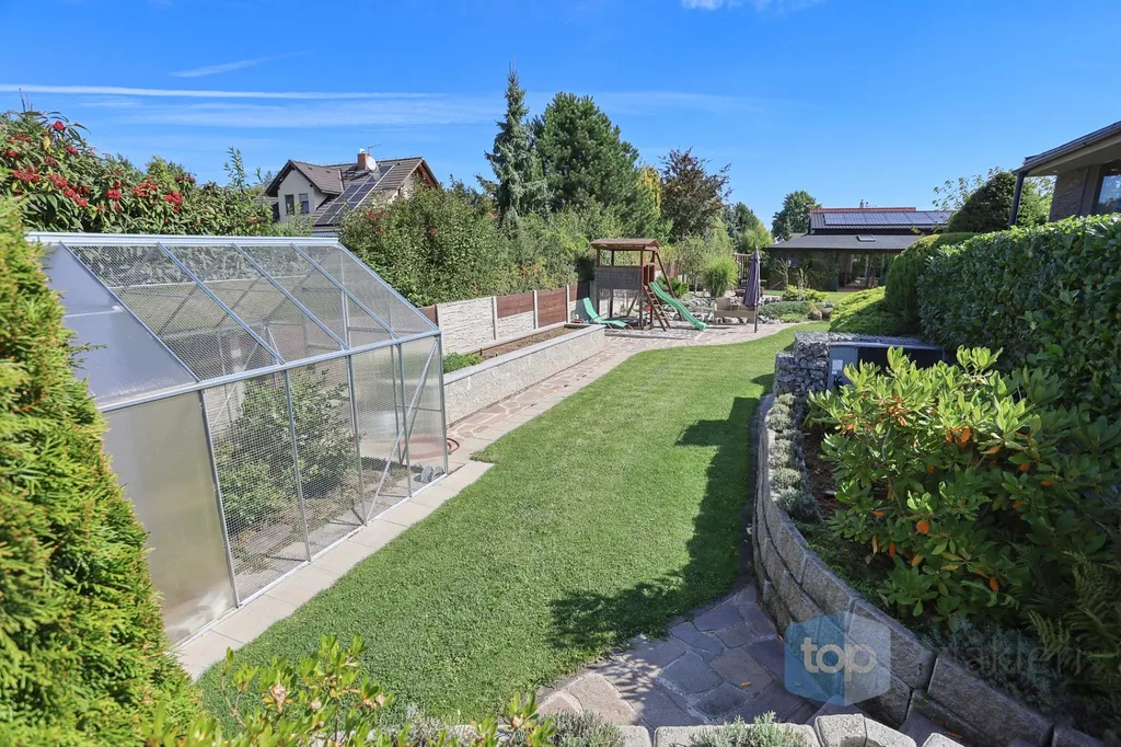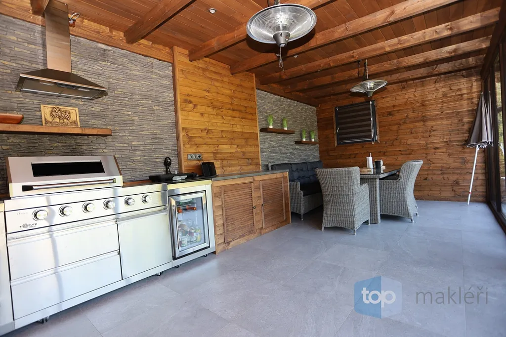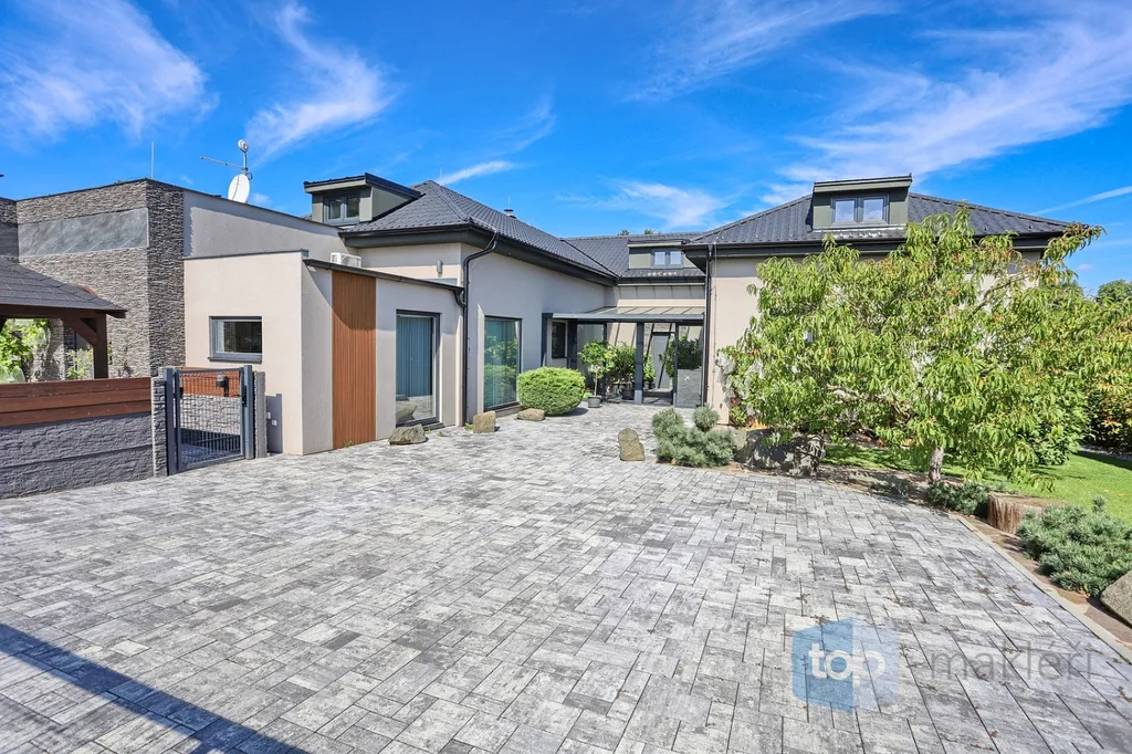 Dnes tu máme něco speciálního. Vždyť kousek od Prahy v nádherné krajině Posázaví se nachází známá obec Pyšely. A v její části Zaječice stojí dům, který nezná kompromisy. Při celkové rozloze 699 m² a pozemcích o rozloze 6672 m² je to nemovitost, kde opravdu nebudete mít málo místa. Již od garáže (vlastně prakticky servisu), kde se může zaparkovat až 5 aut, přes prostorné obytné místnosti, hernu, posilovnu, kancelář, až po zimní zahrady s vnitřním bazénem, či venkovní kuchyní. Na zahradě jsou pak části pro odpočinek, třeba u jednoho ze dvou jezírek s rybami, tak i vedlejší částí, kde jsou třeba i lavičky a ohniště přímo v zeleni a dokonce i potok. Díky použitým technologiím získáte energetickou třídu A podporovanou tepelným čerpadlem a na střechách je fotovoltaika o výkonu 23 KW a z toho je 13 KW s garantovaným odkupem (výnos při provozu domu navíc je cca 80.000,- Kč/ rok). Samozřejmostí je i bateriový úložný systém pro vyrobenou energii. Dům je i částečně klimatizovaný pro váš domácí komfort. V hlavních obytných místnostech jsou designové napínané stropy a v obývacím pokoji je pro zimní pohodu i krb.