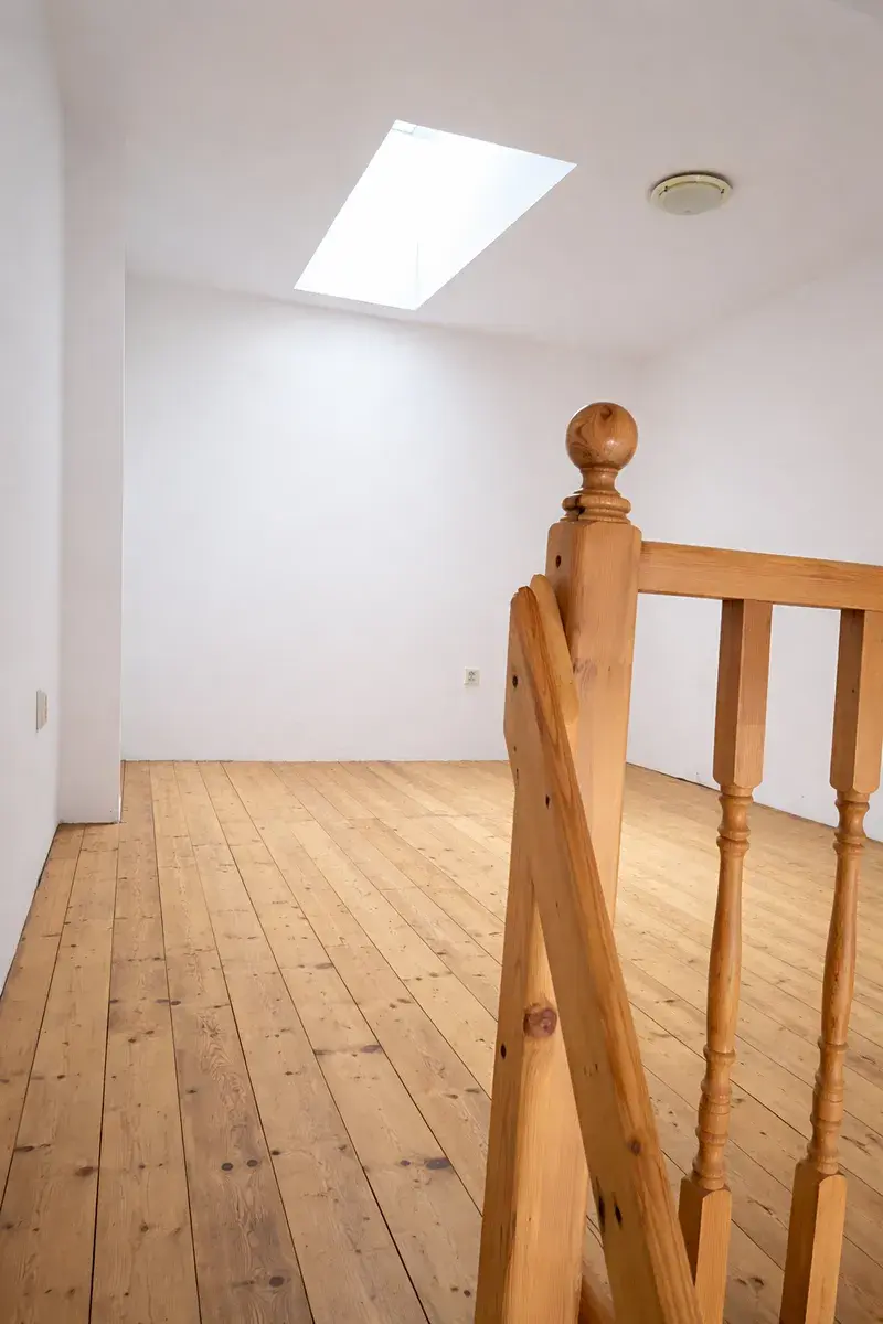 Byt se skládá z prostorné obytné místnosti s kuchyní, mezipatrem, koupelnou se sprchovým koutem a toaletou.