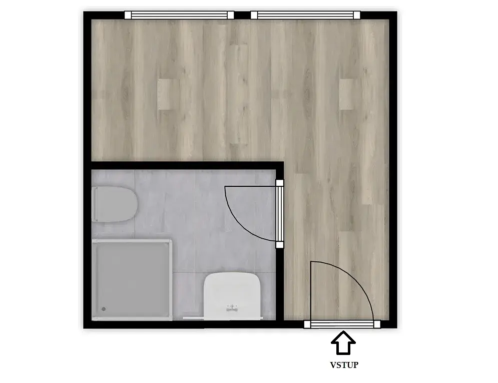 Za vstupními dveřmi se nachází menší chodba o výměře cca 2,2 m², ze které je vstup do koupelny a do hlavní místnosti.