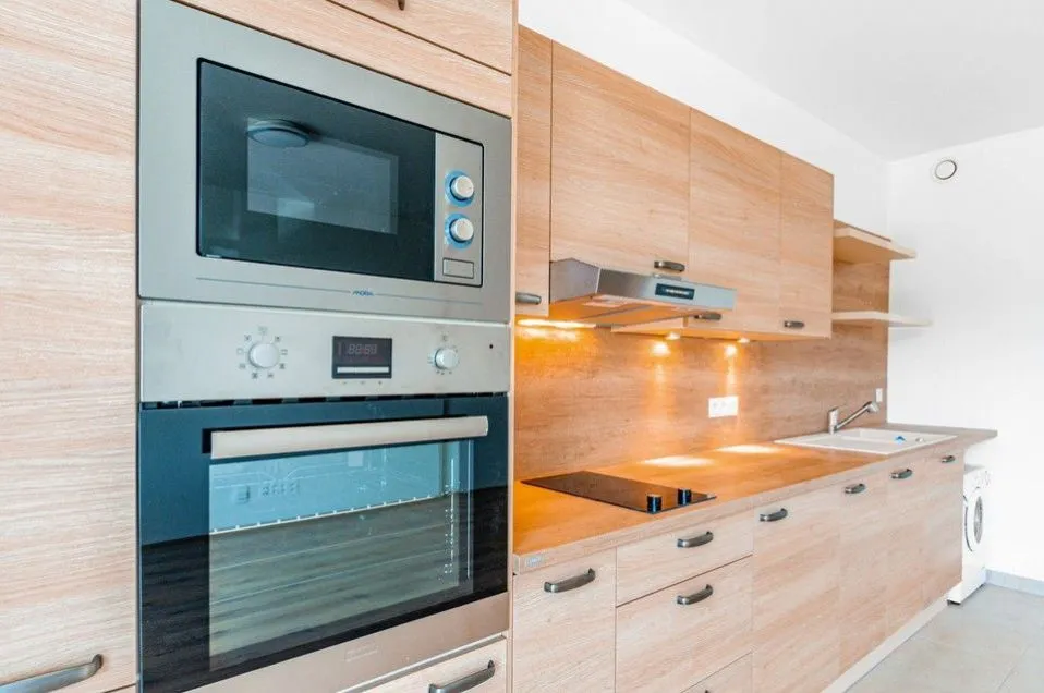 Byt je vybaven kuchyňskou linkou včetně všech spotřebičů (lednice, mrazák, myčka, trouba, mikrovlnka, varná dvojplotýnka), jinak se nabízí jako nezařízený.
