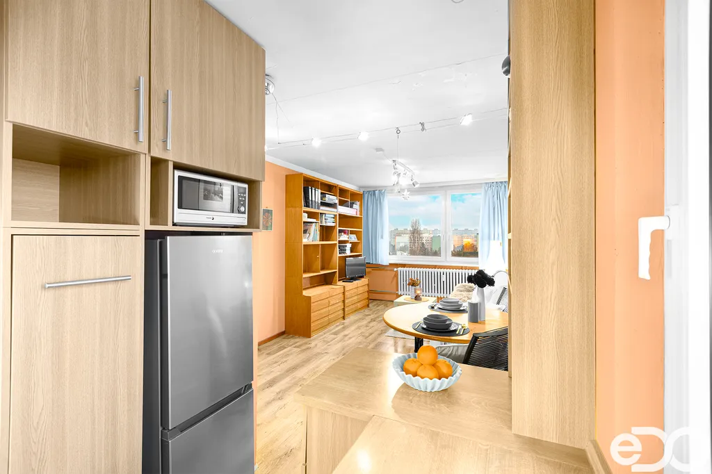 Velmi rád bych Vám v zastoupení majitele nabídl k prodeji atraktivní bytovou jednotku v osobním vlastnictví o dispozici 2+kk a celkové ploše 44 m2, která se nachází v 7. patře revitalizovaného panelového domu s výtahem v ulici Bazovského, Praha 17 - Řepy. Byt prošel před lety revitalizací jádra, částečně elektrických rozvodů, podlah, vody a odpadu v koupelně a kuchyni, v současné chvíli je ve velmi dobrém stavu. Je ideální jako startovací bydlení či investiční nemovitost. Příslušenstvím k bytové jednotce je zděná sklepní kóje a společné prostory v domě.