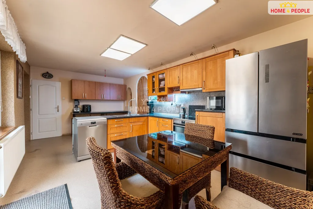 Rohový dům je vystavěn do tvaru písmene U, má vlastní boční vjezd bránou na rozsáhlý pozemek kde na zadní části pozemku je možná dostavba nebytového objektu, dvojgaráže, dílny pro podnikání v dostatečné vzdálenosti od obytného prostoru domu.